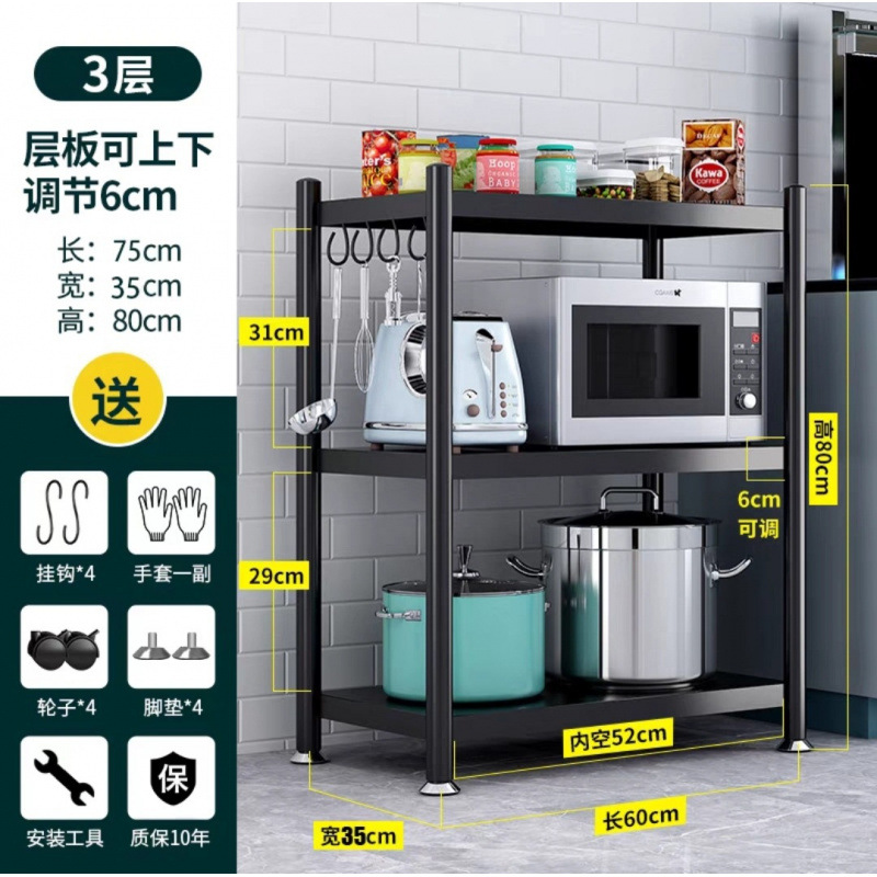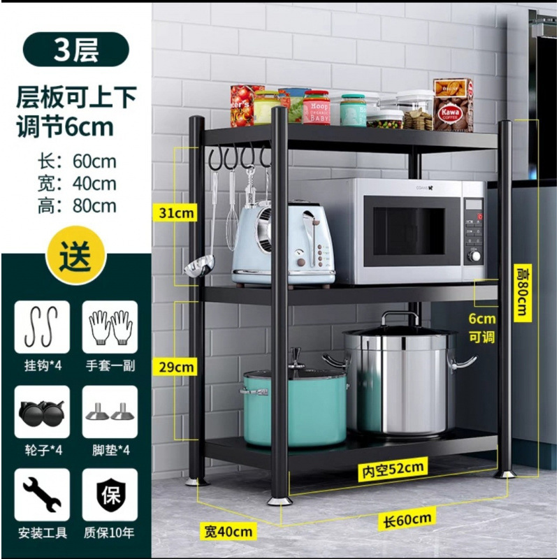 주방 보관 선반 바닥 다층 전자 레인지 다기능 보관 선반 계층화 된 선반 도매스토어 가기