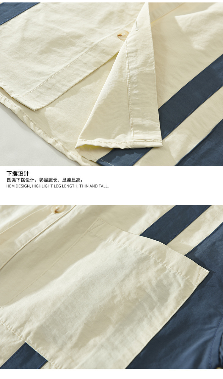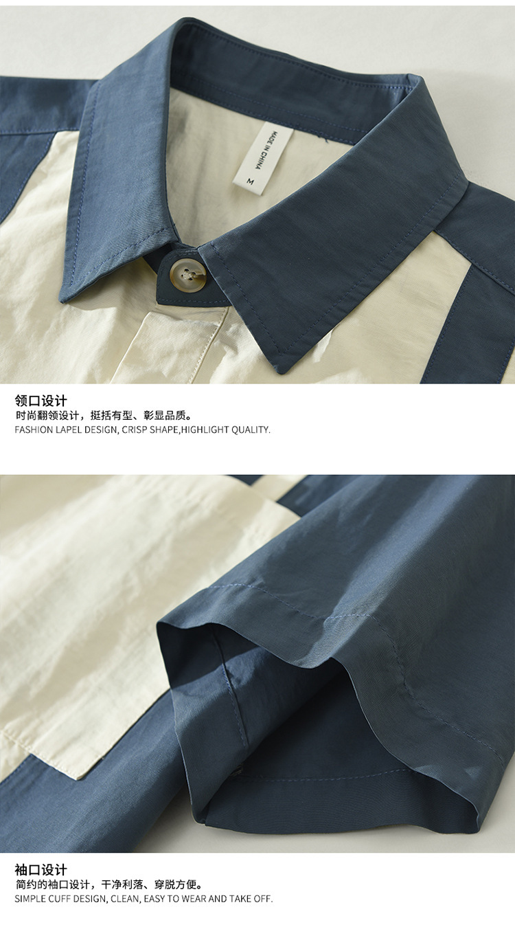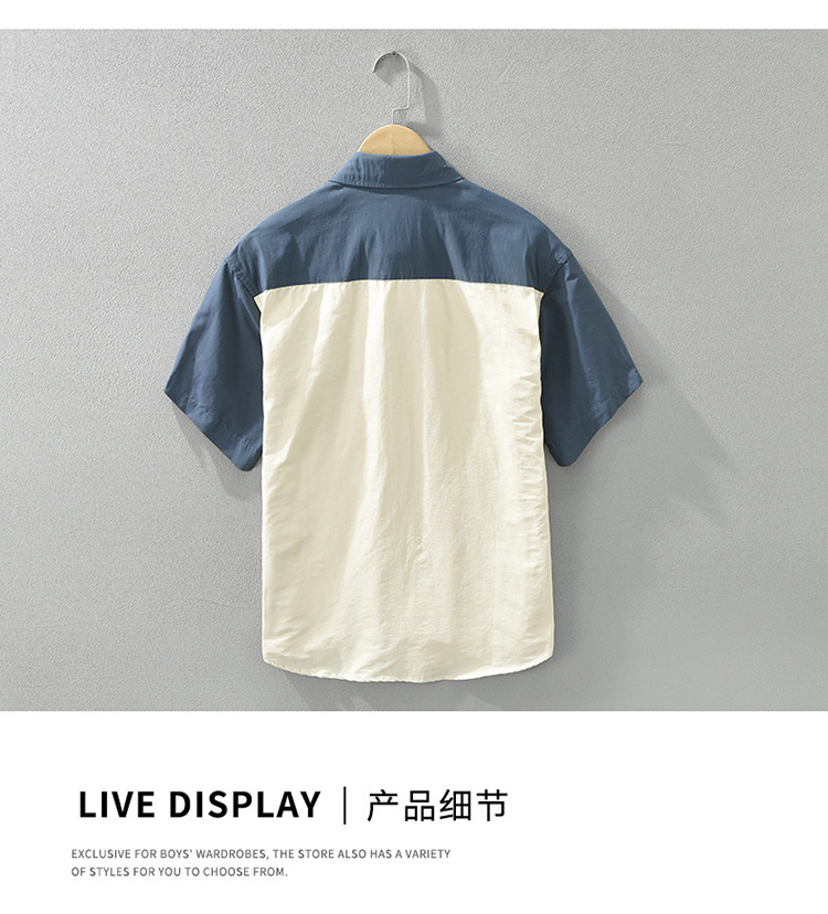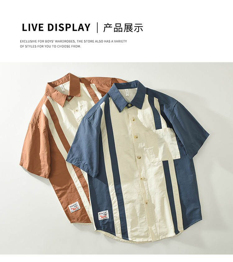 명암 컬러 바느질 단색 짧은 소매 셔츠 남자의 여름 일본 스타일 레트로 트렌디 브랜드 캐주얼 셔츠 유행 루즈 탑 잘 생긴스토어 가기