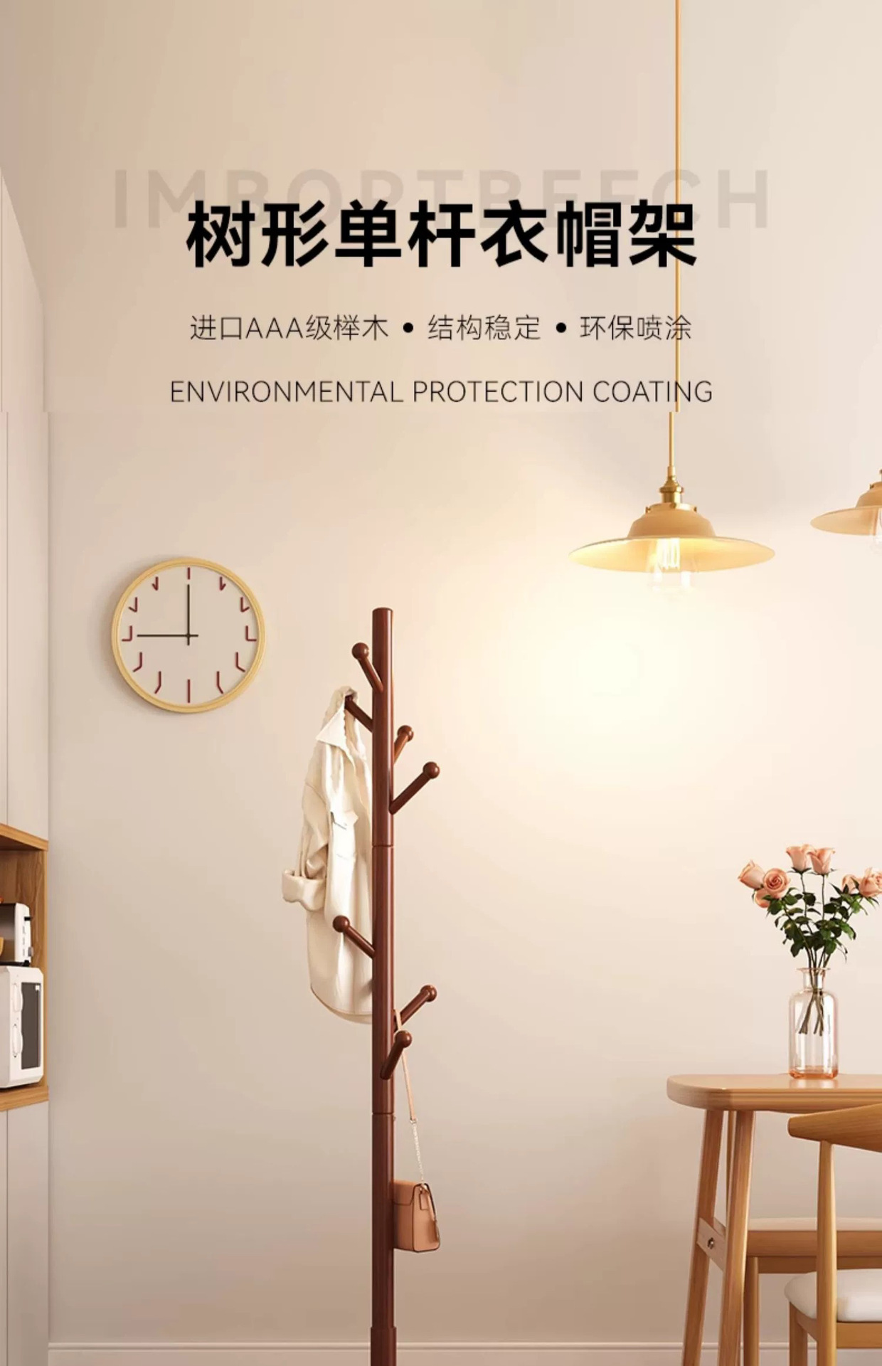 단단한 나무 옷걸이 바닥 코트 랙 침실 가구 걸이 간단한 수직 너도밤 나무 옷 걸이 랙 실내 교수형 랙스토어 가기