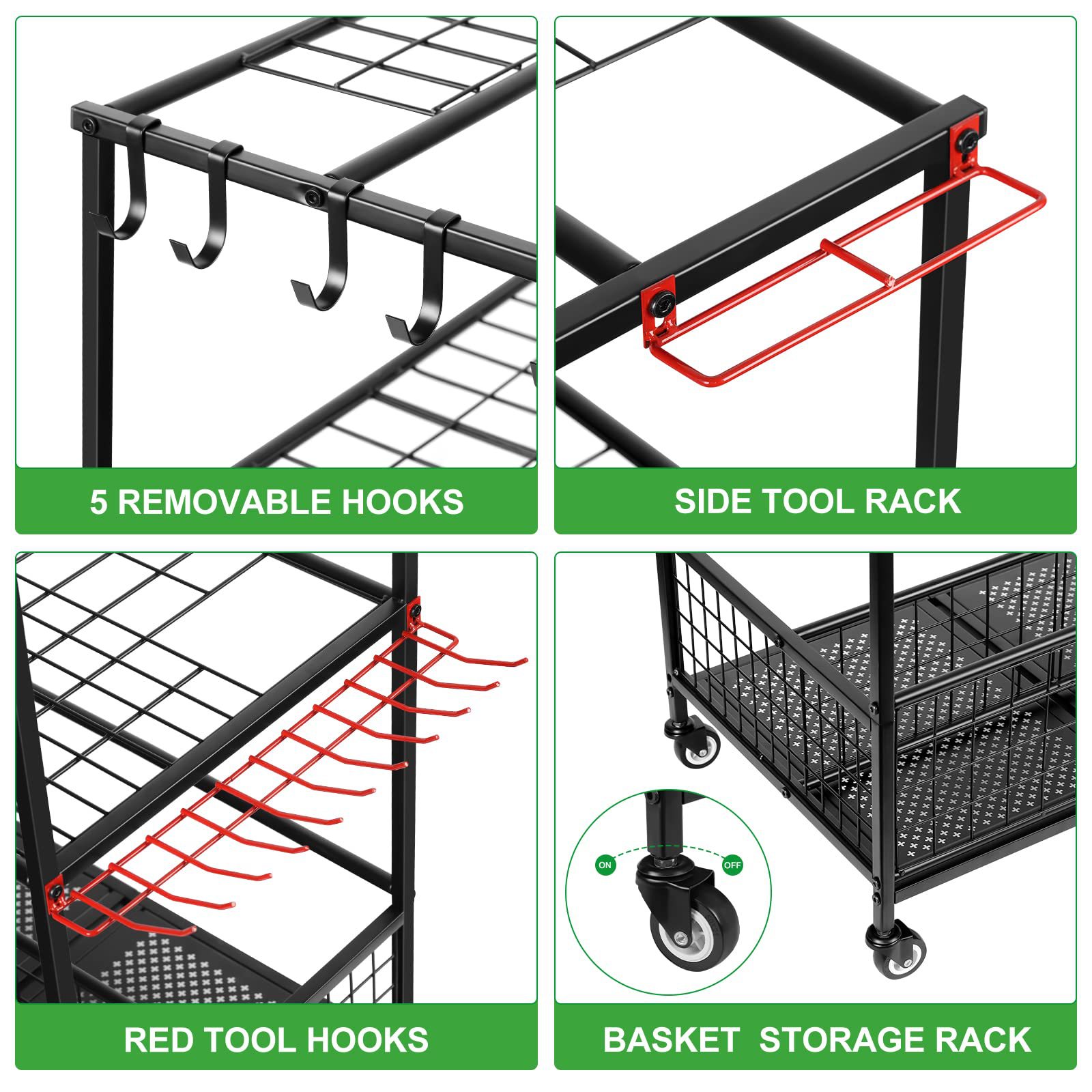국경 간 아마존 가든 도구 스토리지 랙 코트 야드 마무리 브룸 삽 스토리지 랙 차고 스토리지 랙