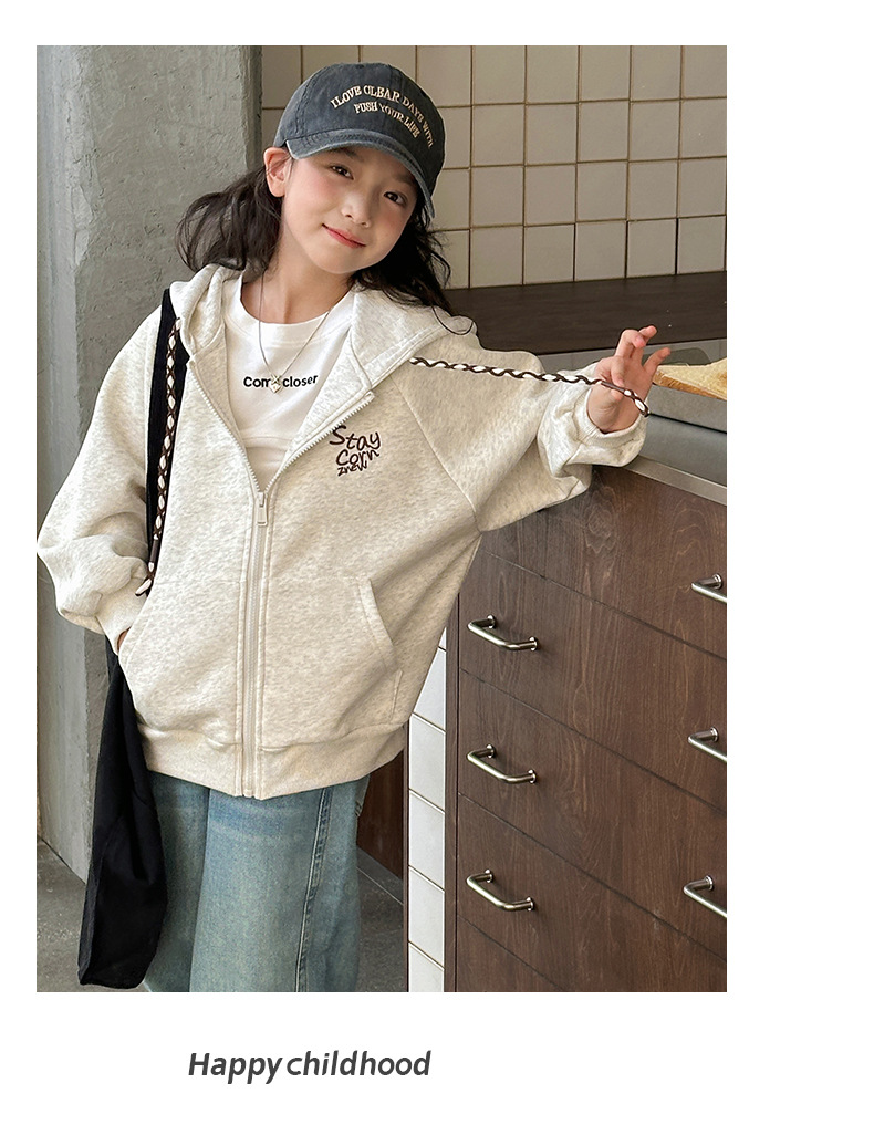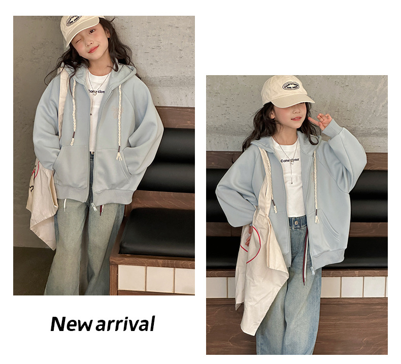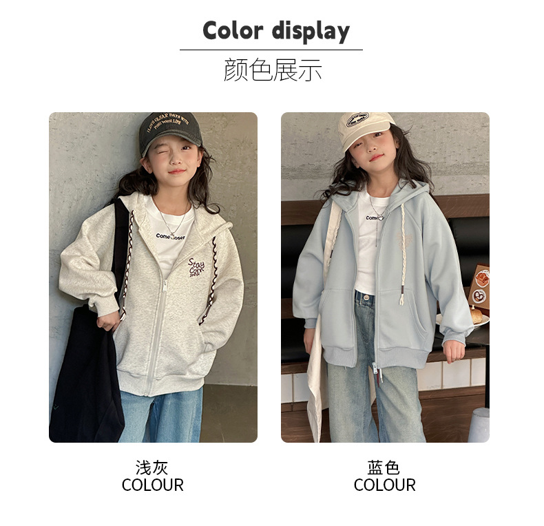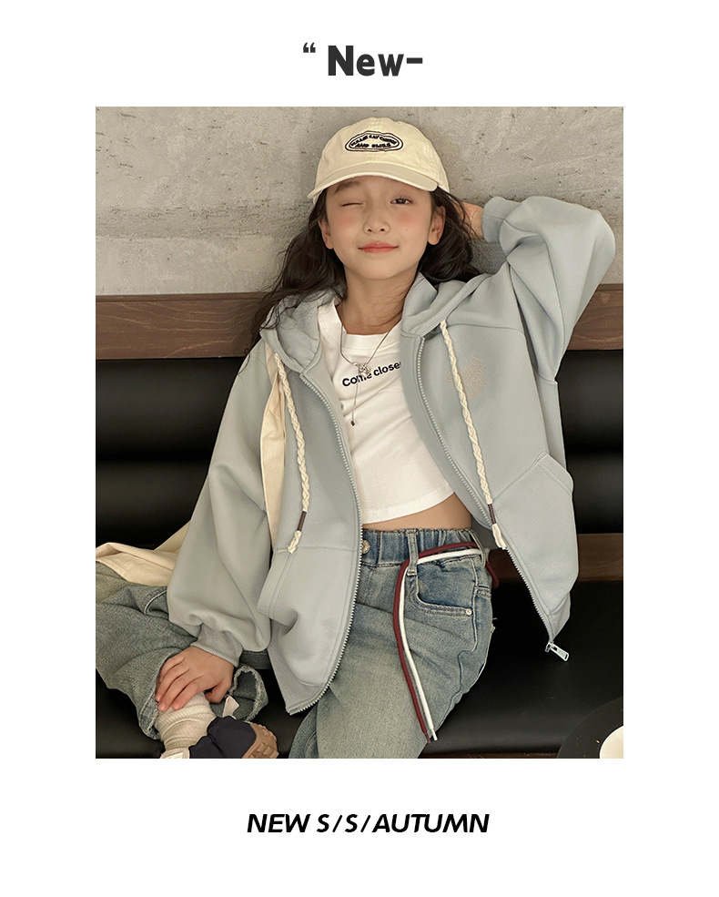소녀 코트 2025 봄과 가을 새로운 어린이 봄 착용 캐주얼 스포츠 후드 스웨터 카디건 느슨한 아동복 탑