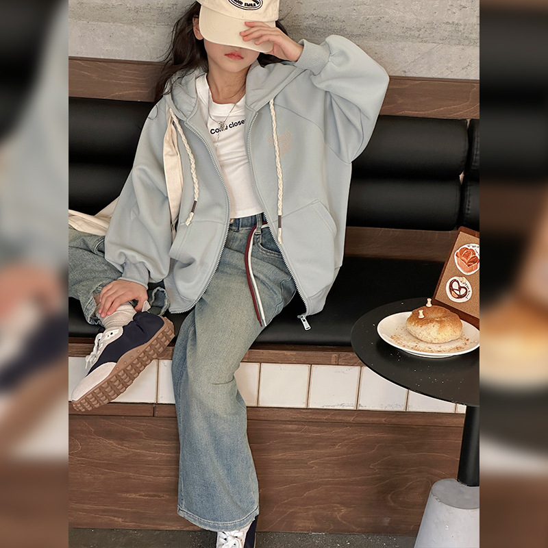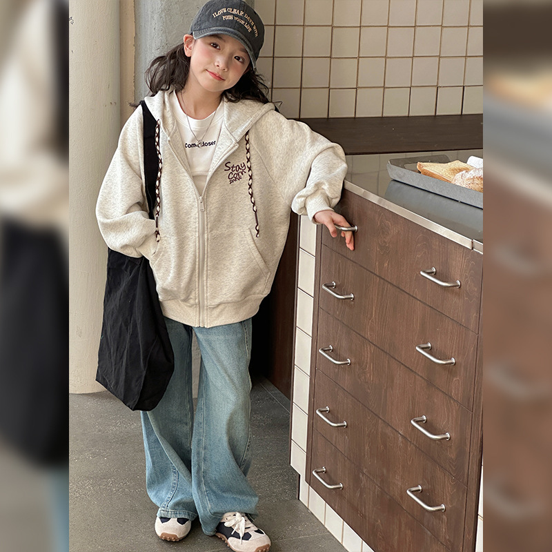 소녀 코트 2025 봄과 가을 새로운 어린이 봄 착용 캐주얼 스포츠 후드 스웨터 카디건 느슨한 아동복 탑스토어 가기