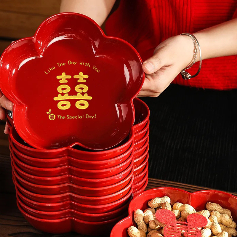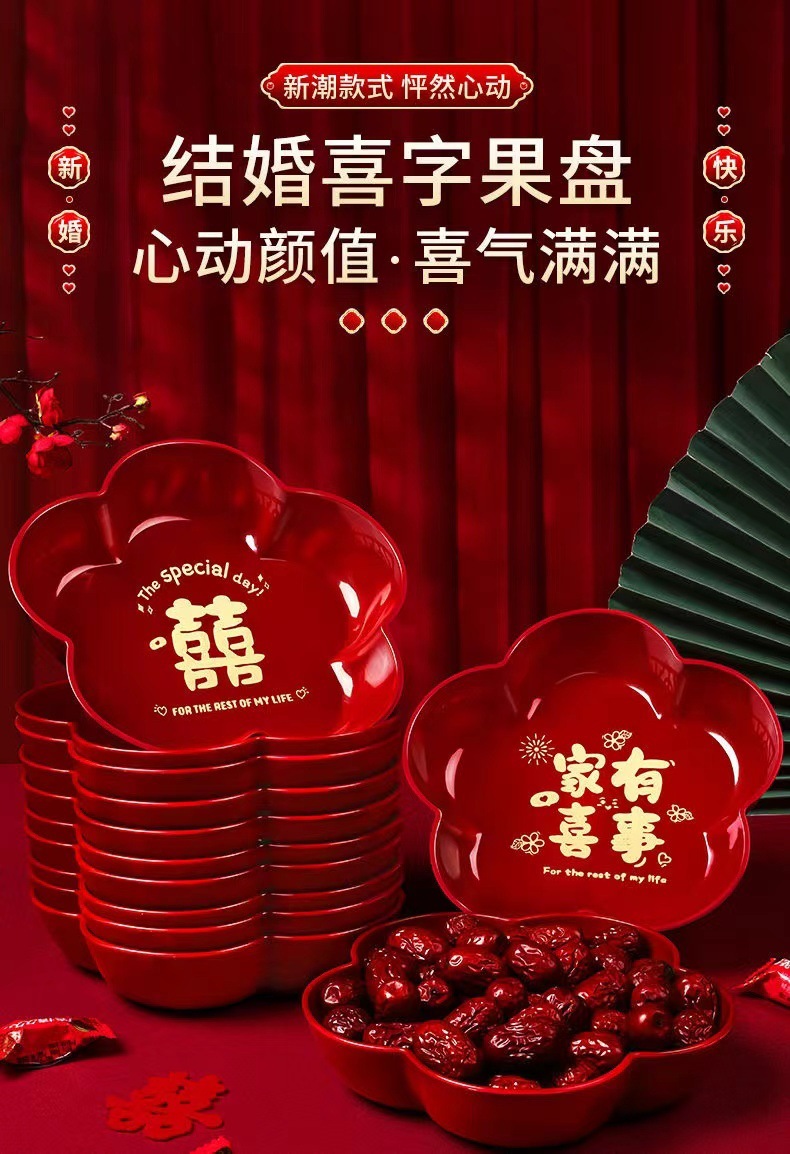 웨딩 캔디 과일 플레이트 거실 레드 말린 과일 플레이트 약혼 장식 웨딩 과일 플레이트 웨딩 장식 플레이트