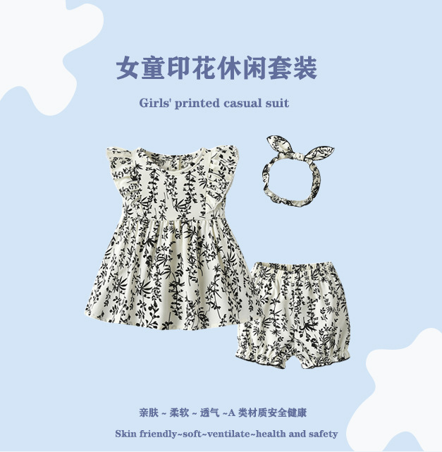세 조각 소녀 여름 원피스 세트 아기 소녀 슬리브-프리 스커트 세트 헤어 벨트 여름 공주 외국 스타일 한국 국경 대외 무역