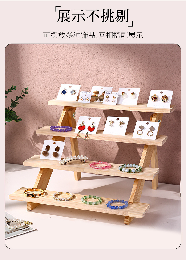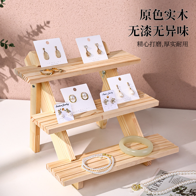 나무 데스크탑 귀걸이 목걸이 반지 디스플레이 랙 멀티 레이어 간단한 화장품 스토리지 랙 디저트 샵 케이크 랙