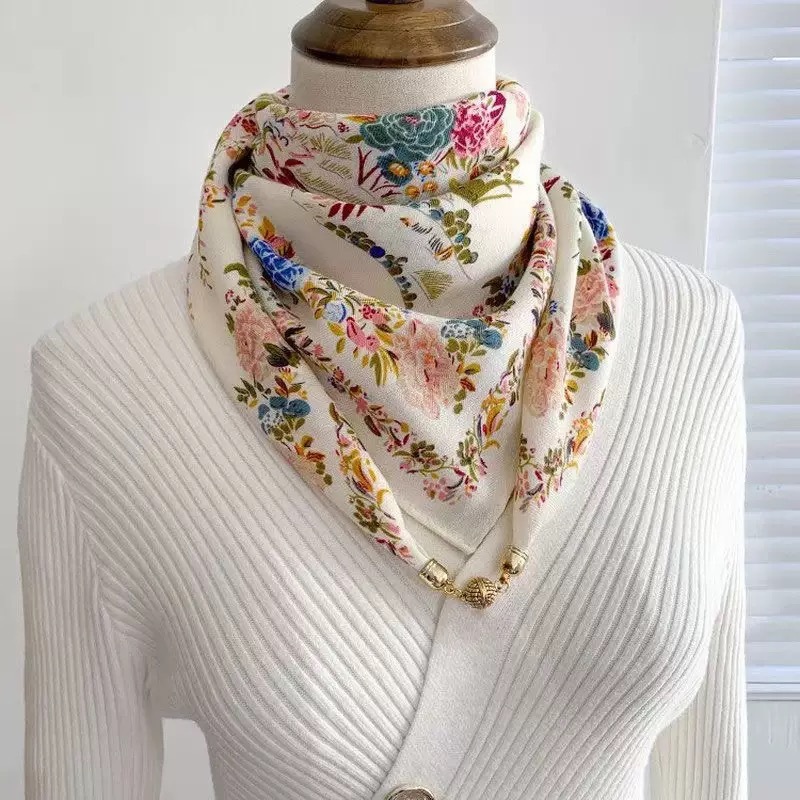 자석 버클 스카프, 봄철 여성용 실크 스카프, 고급스러운 자석 버클 넥 스카프, 코트와 함께 입는 넥 워머, 봄 가을용스토어 가기
