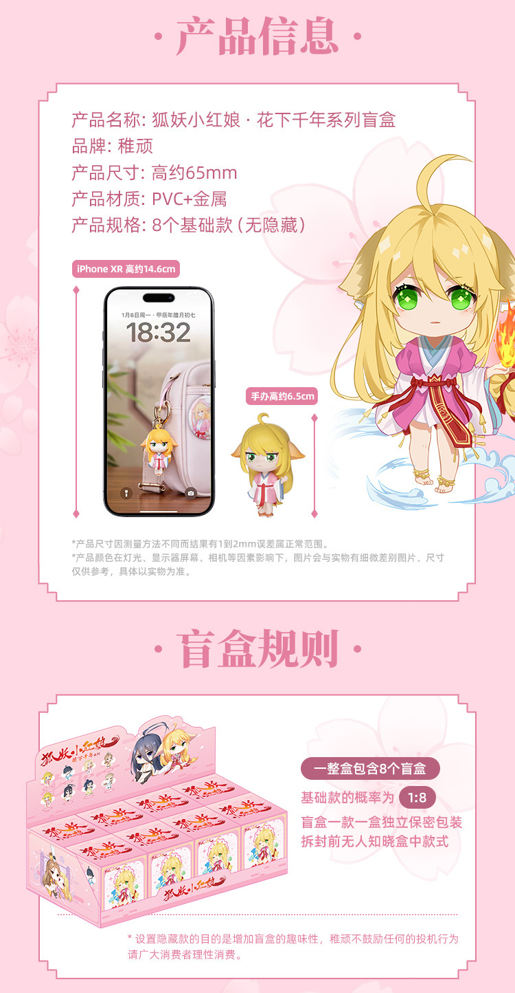 정품 어린애 같은 여우 악마 리틀 매치 메이커 블라인드 박스 시리즈 꽃 수천 년의 로얄 파워와 부 Q 에디션 수제 인형 펜던트