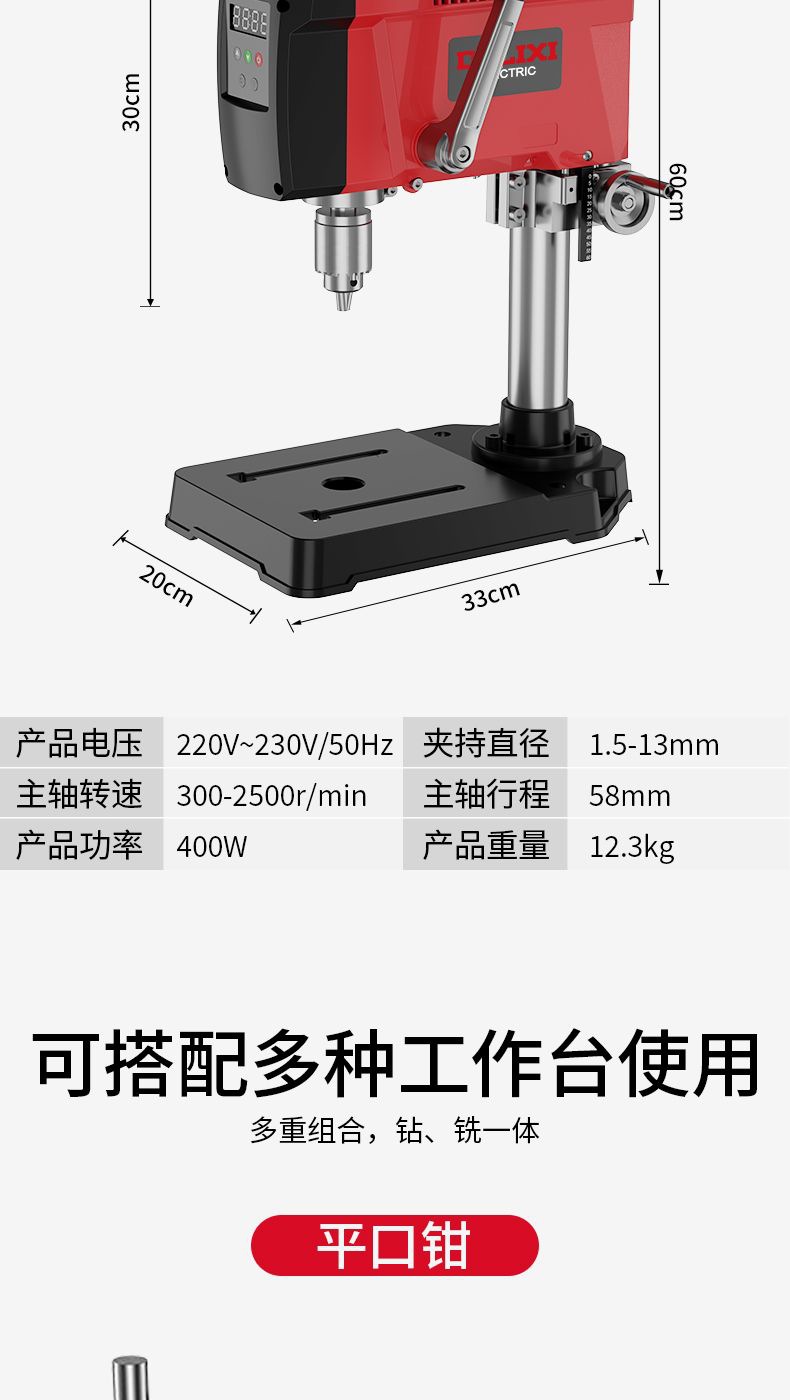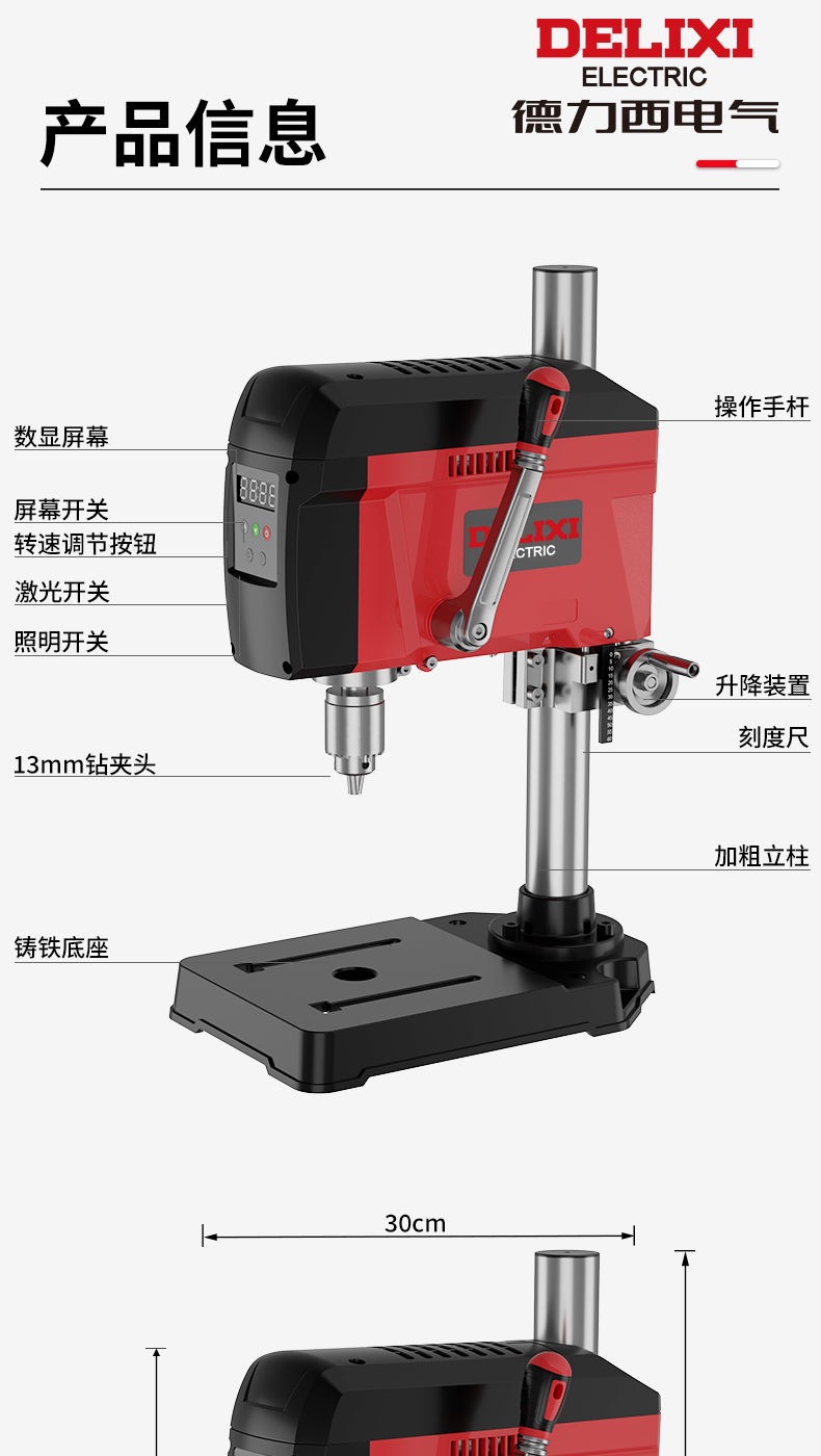 Delixi 브러시리스 디지털 디스플레이 벤치 드릴 작은 가정용 전기 220v 고출력 드릴링 머신 작업 테이블 고정밀 드릴링 머신스토어 가기