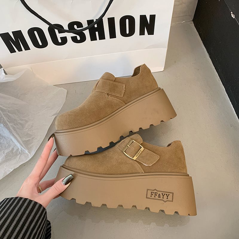 고층 머핀 신발 여성의 작은 두꺼운 밑창 신발 스웨이드 이른 봄 2025 페달 LeFou 라운드 헤드 새로운스토어 가기