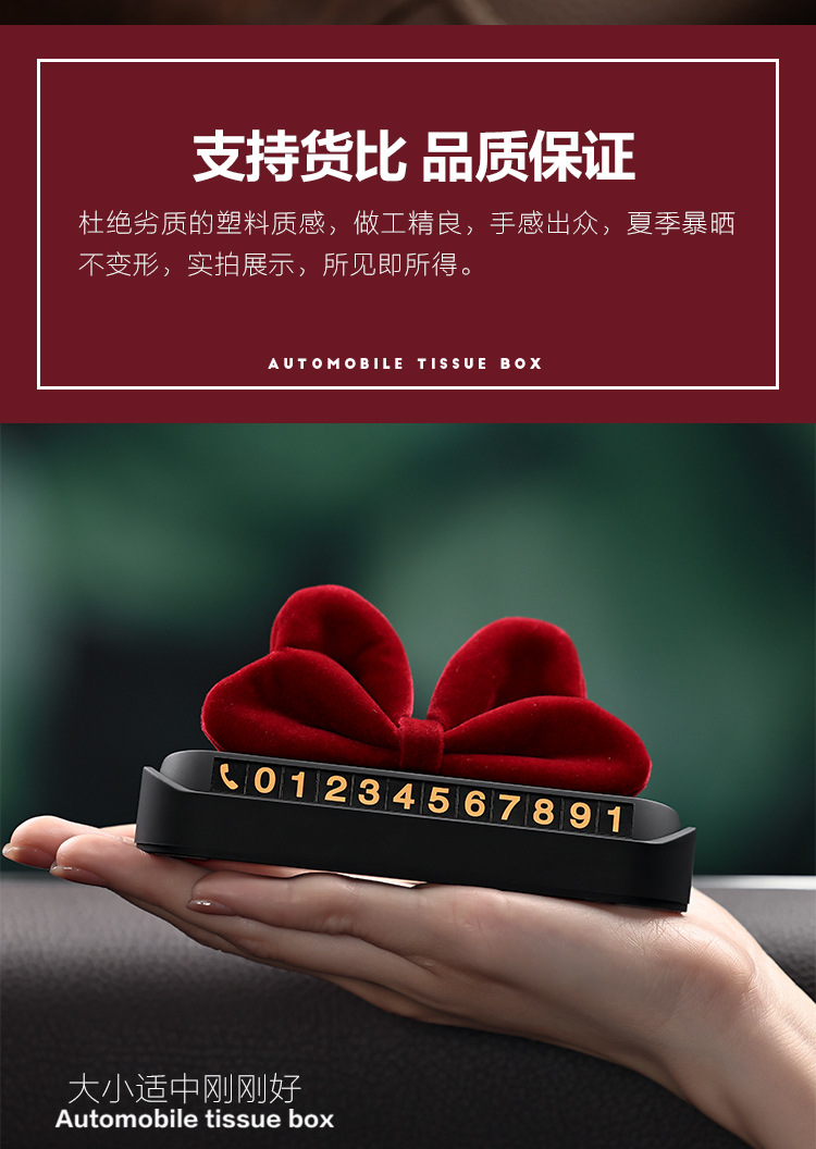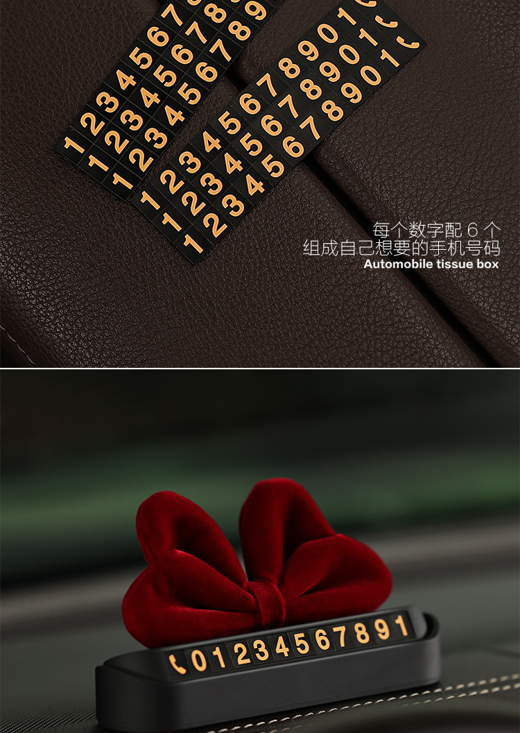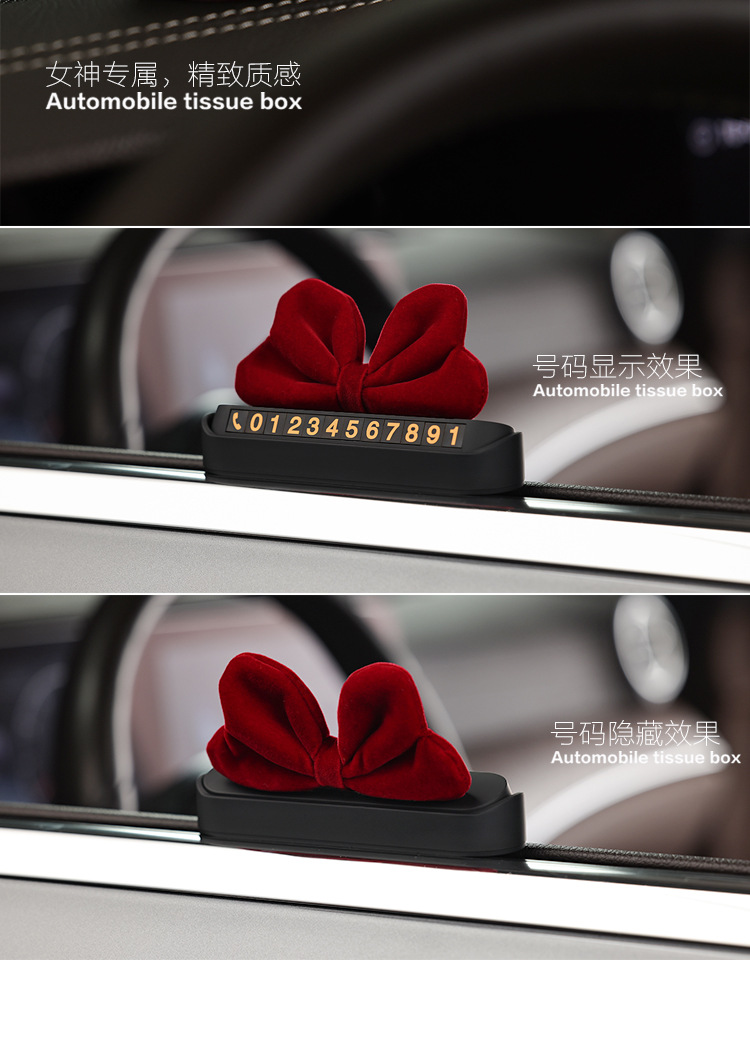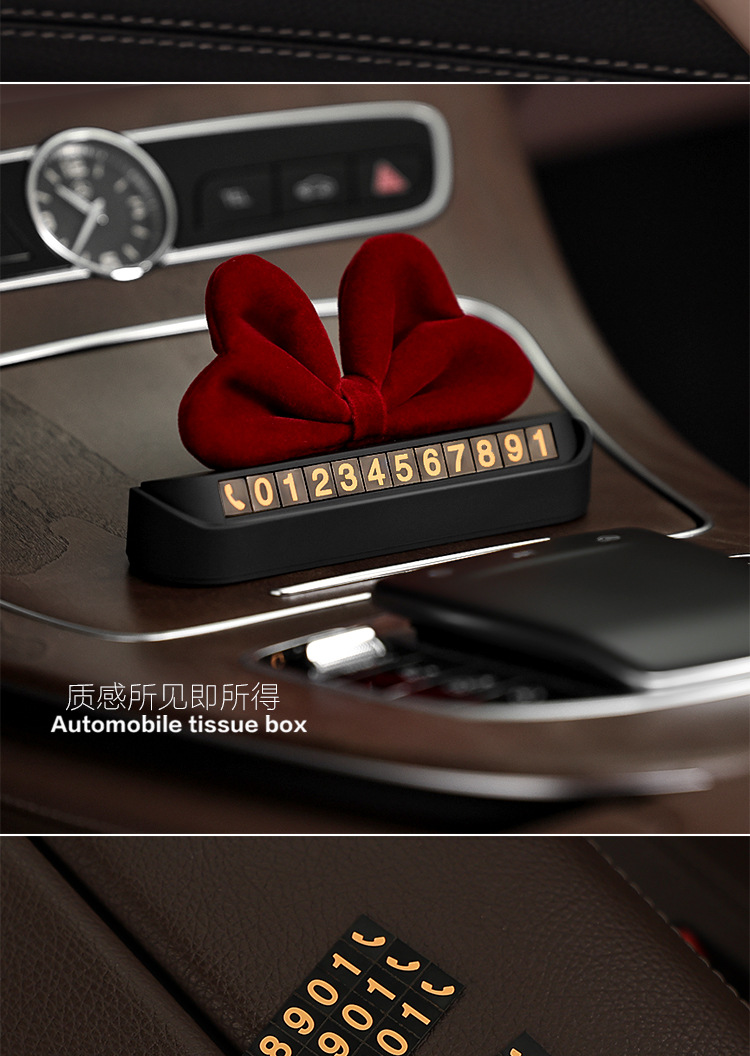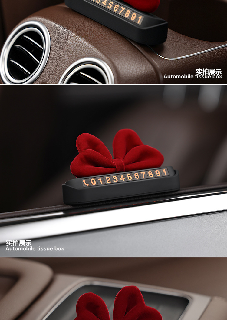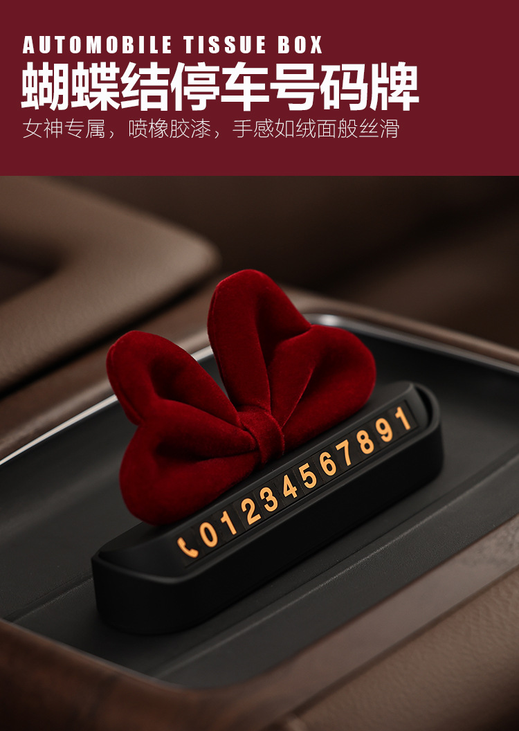 나비매듭 자동차 임시 주차 전화번호판 여성용 이동 번호판 자동차 실내 실용적인 장식품 및 용품