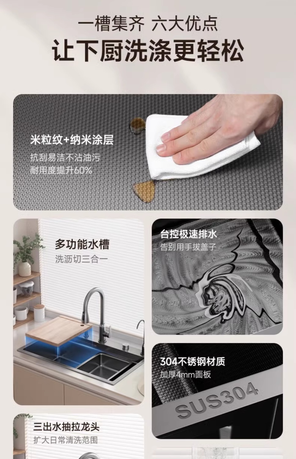 슈퍼 두꺼운 304 스테인레스 스틸 단일 곡물 양각 나노 주방 세척 야채 분지 전체 국가 표준 세트스토어 가기