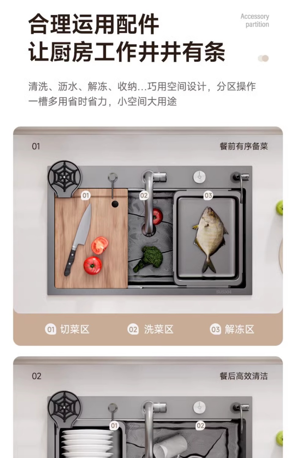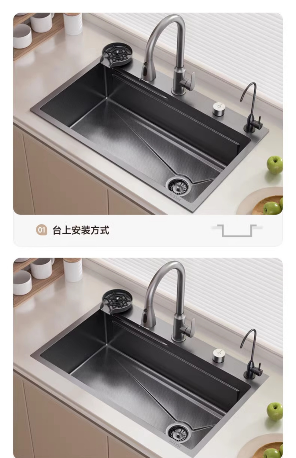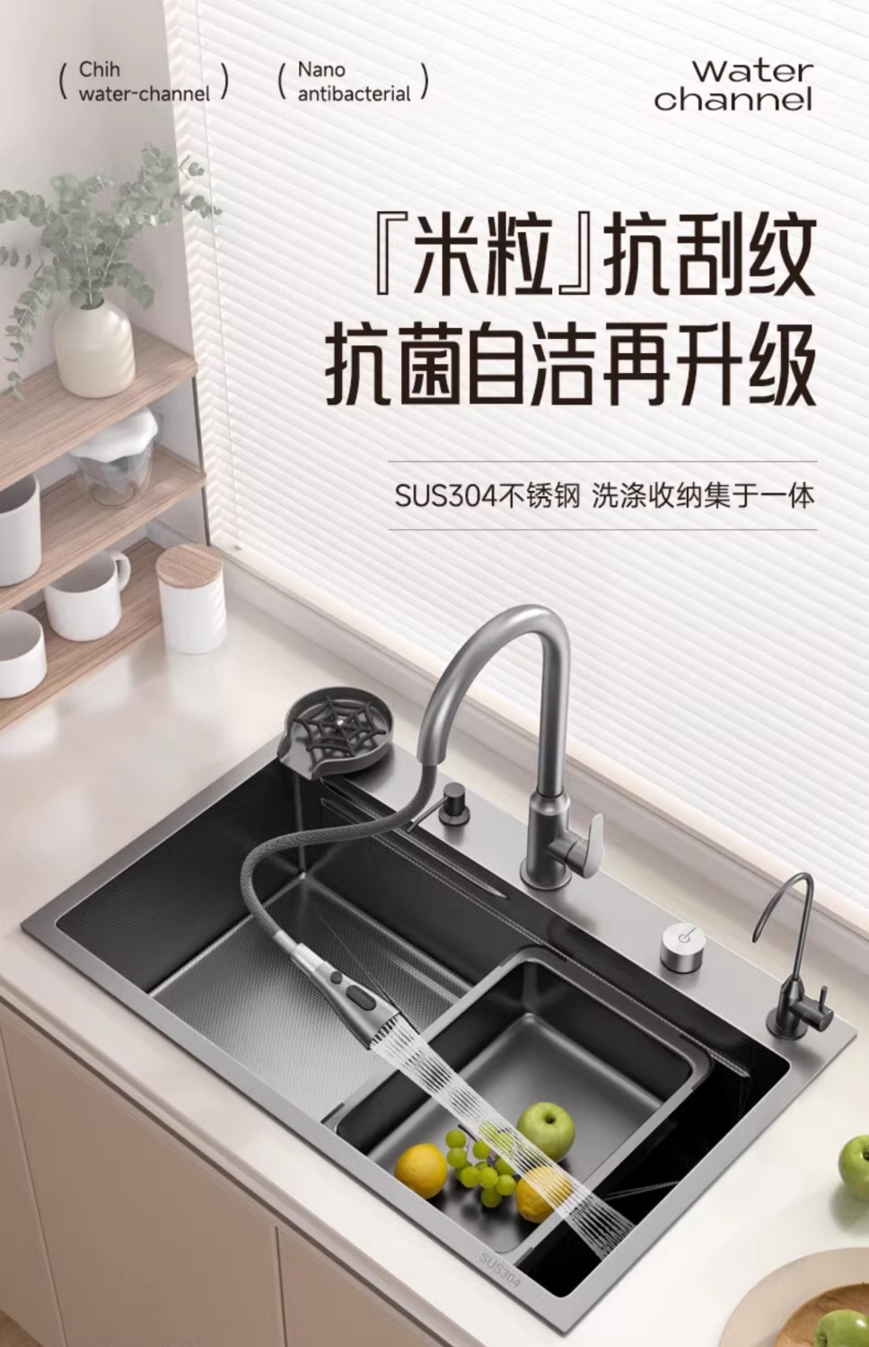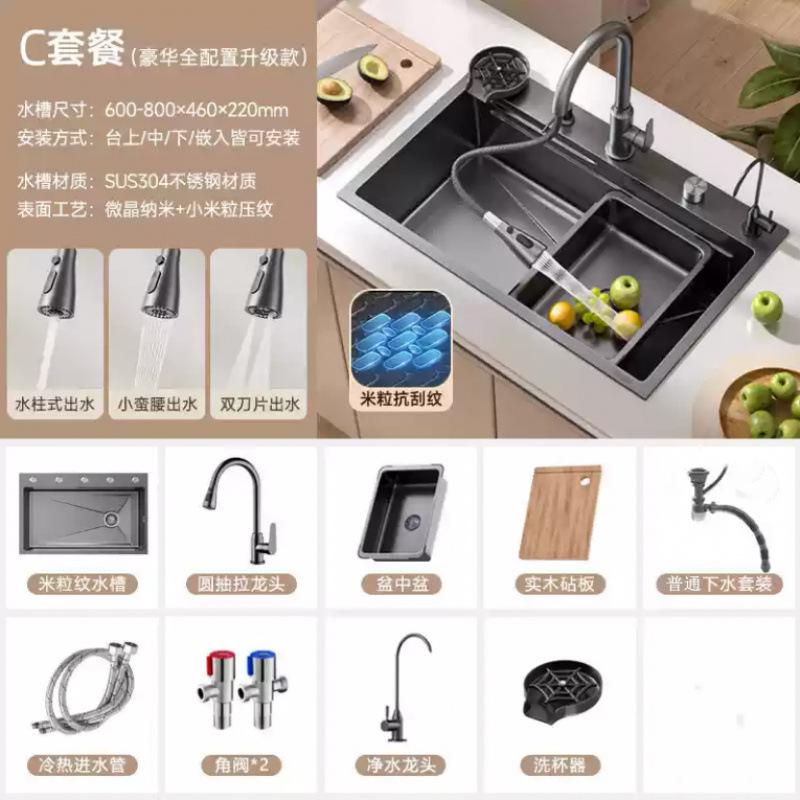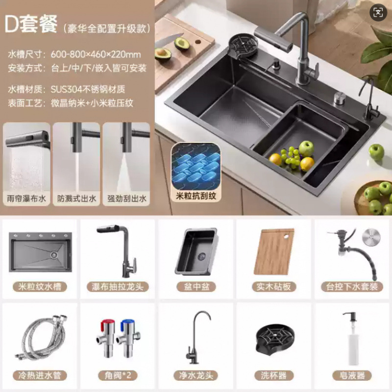 슈퍼 두꺼운 304 스테인레스 스틸 단일 곡물 양각 나노 주방 세척 야채 분지 전체 국가 표준 세트