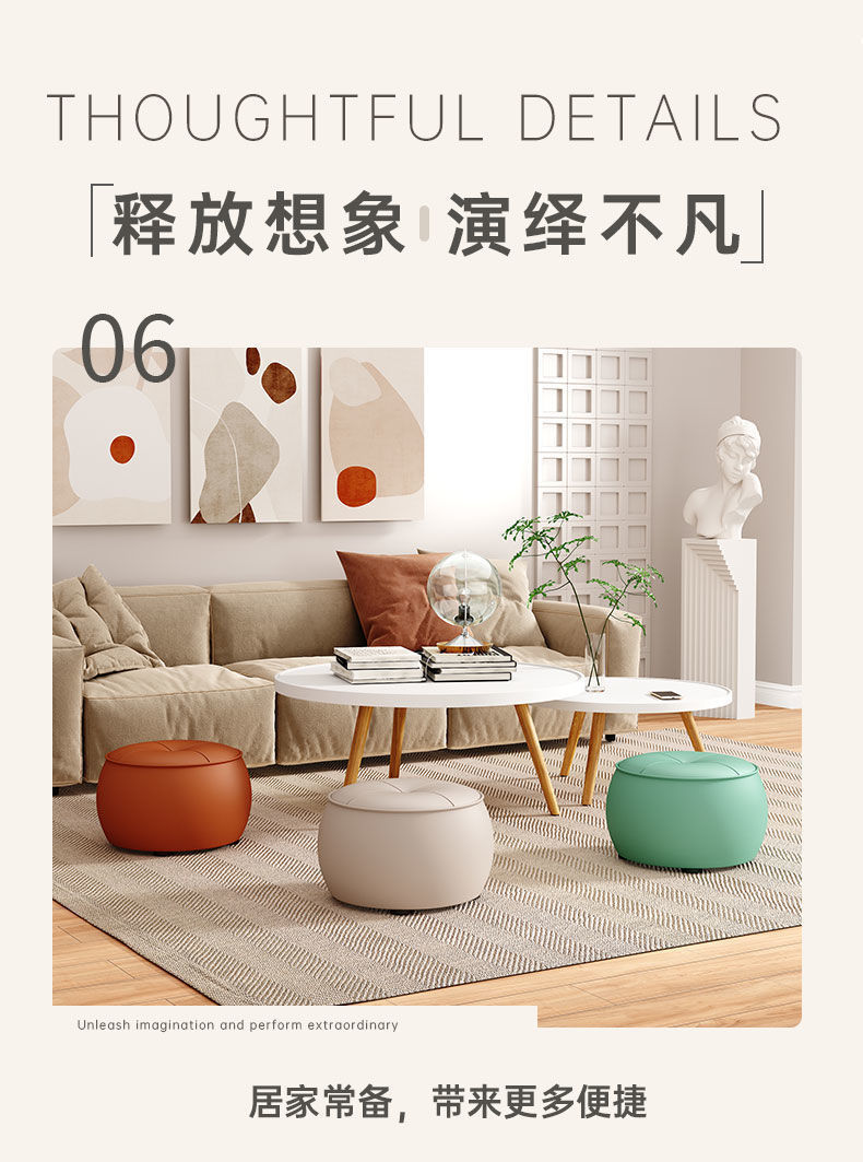 새로운 가정용 벤치 낮은 의자 변경 의자 신발 라운드 의자 빛 럭셔리 앉아 부두 거실 소파 커피 테이블 간단한 호박 의자