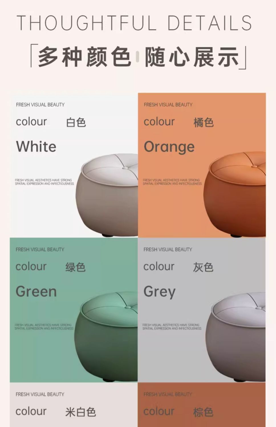 • [업그레이드된 핸들 모델] 선라이트 화이트-극세사 가죽-라운드 스툴