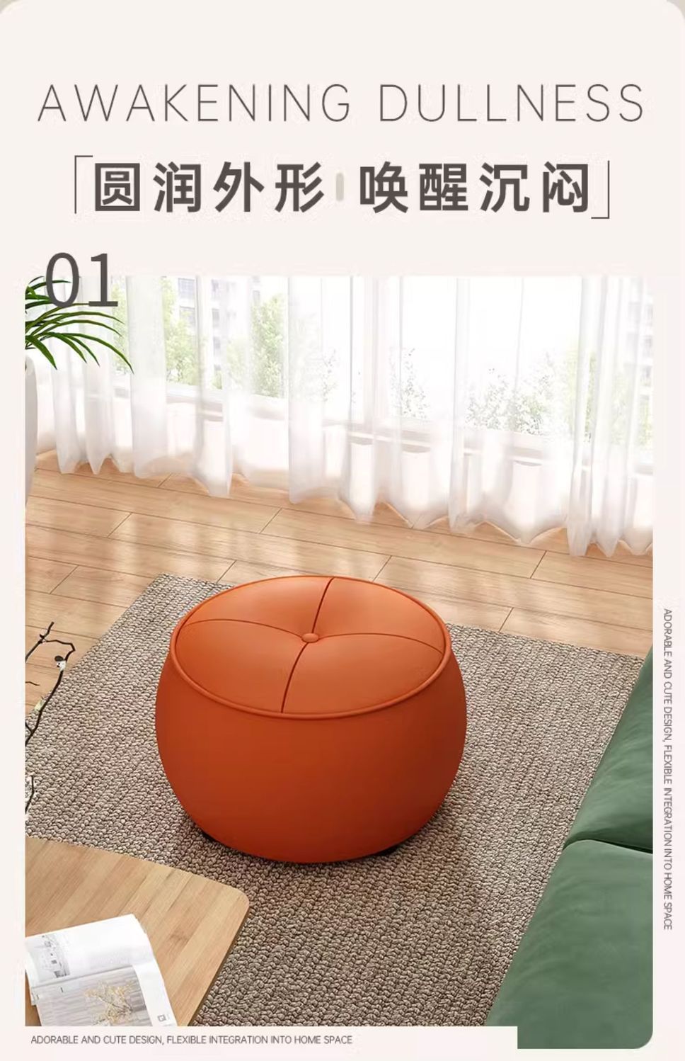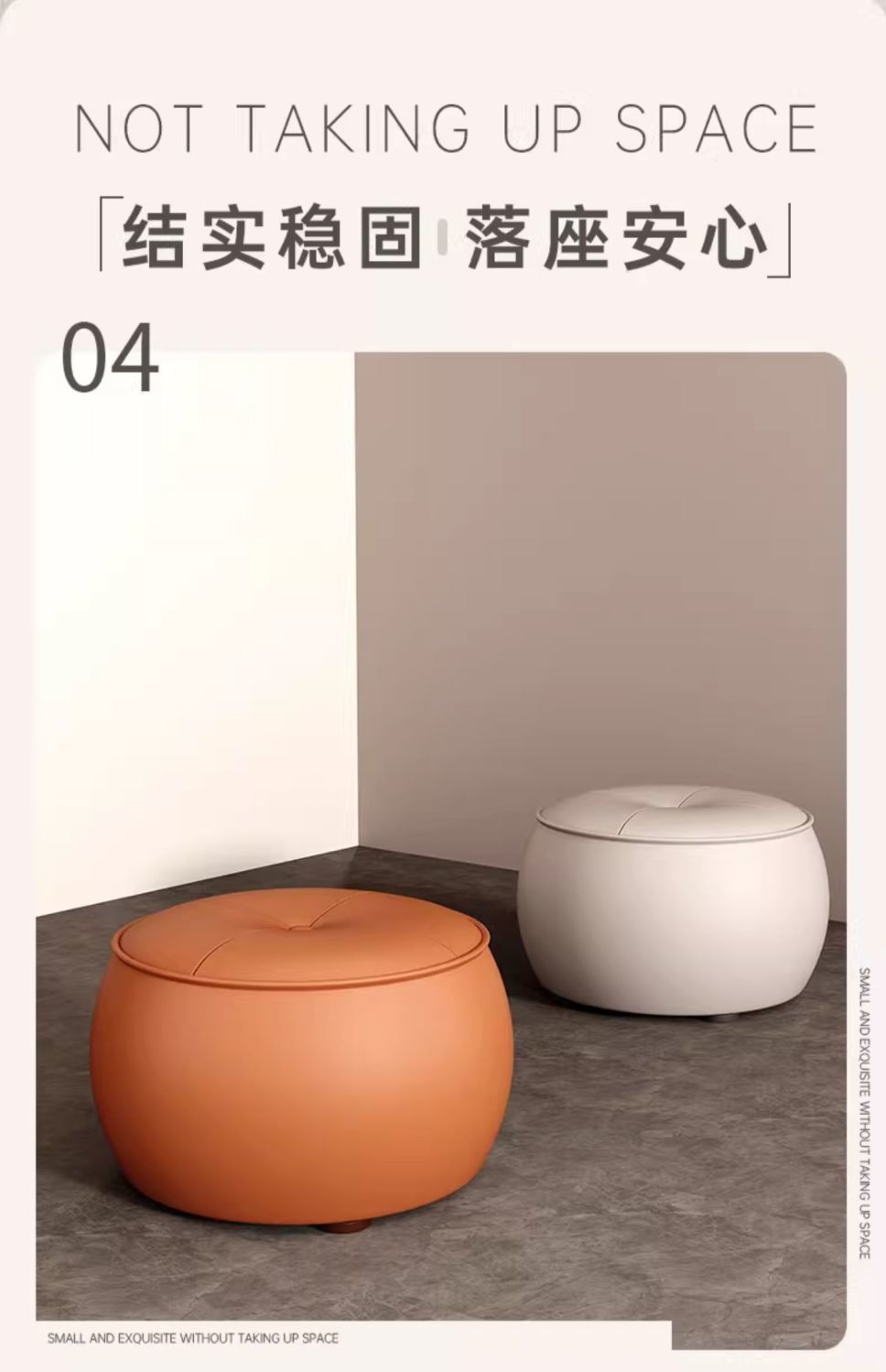 • [업그레이드된 핸들 모델] 메이플 리프 오렌지-극세사 가죽-라운드 스툴