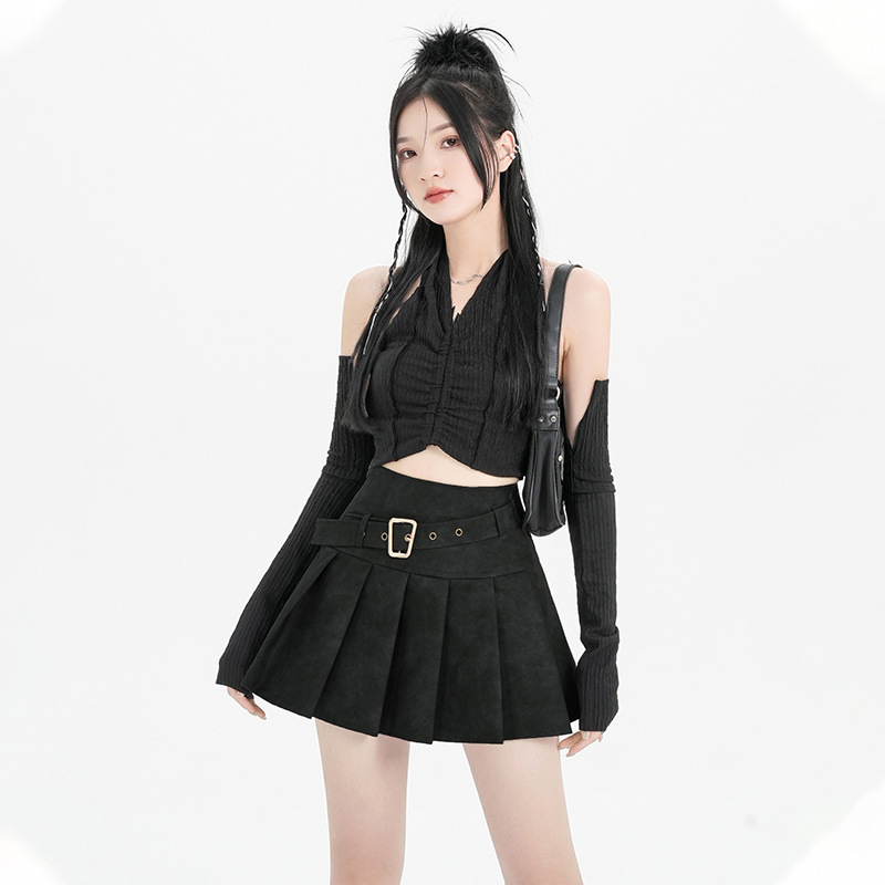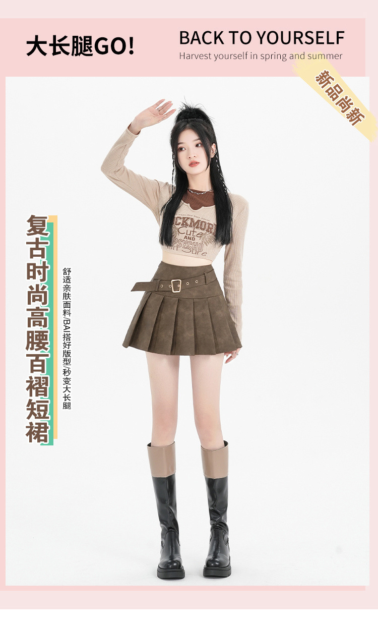 가죽 치마 봄 2025 새로운 향신료 소녀 가죽 스커트 높은 허리 슬림 A-라인 주름 스커트 웨스턴 스타일 레트로 스커트