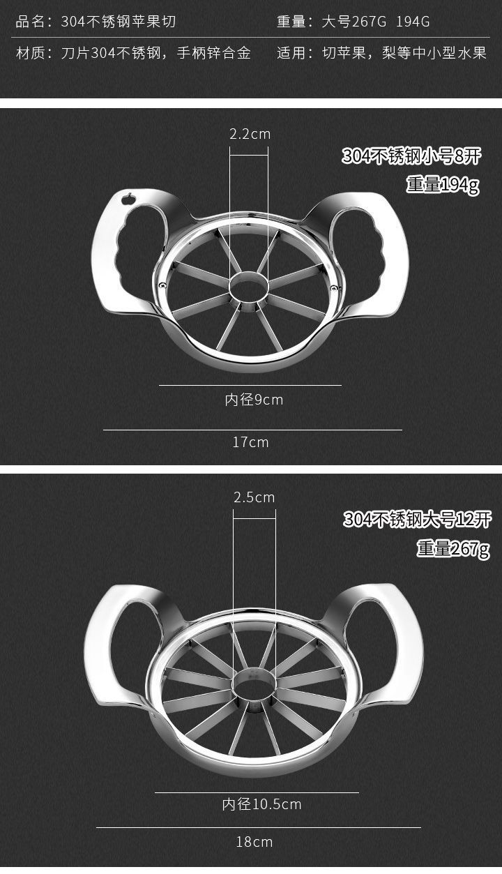 애플 과일 스플리터 다기능 과일 커터 스테인레스 스틸 껍질 칼 껍질 슬라이스 코어 도구