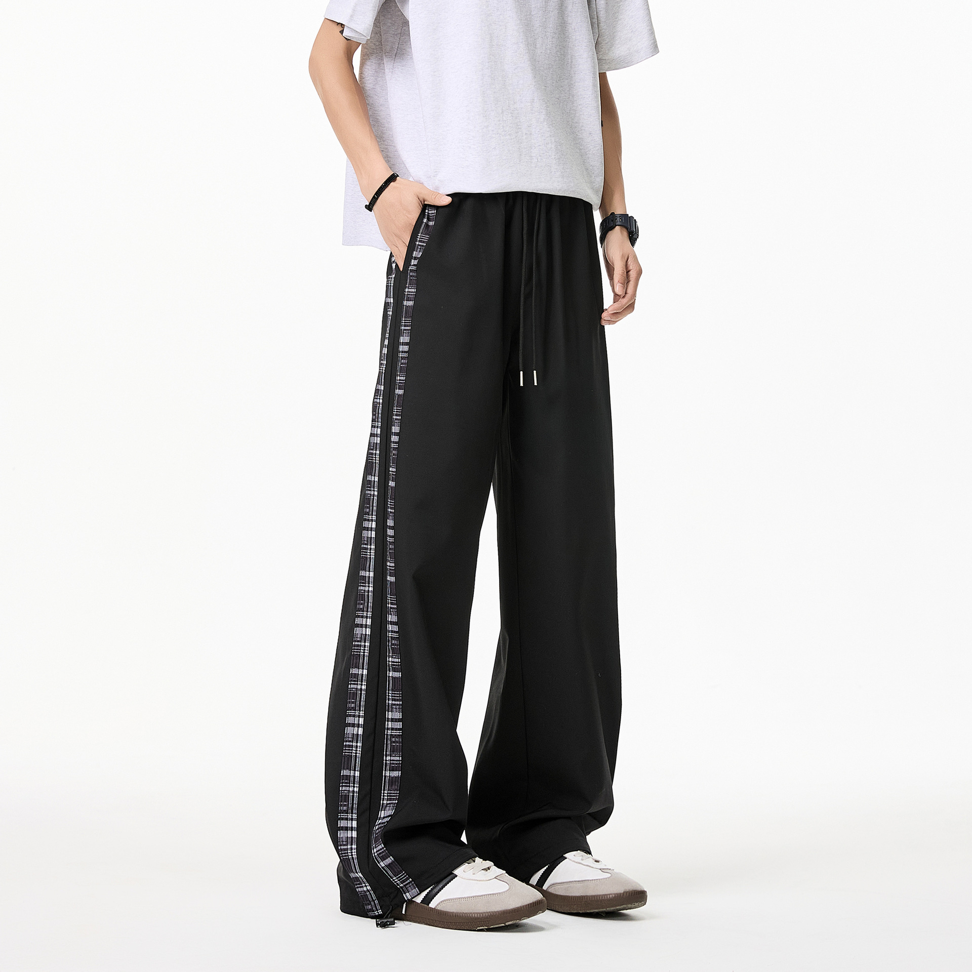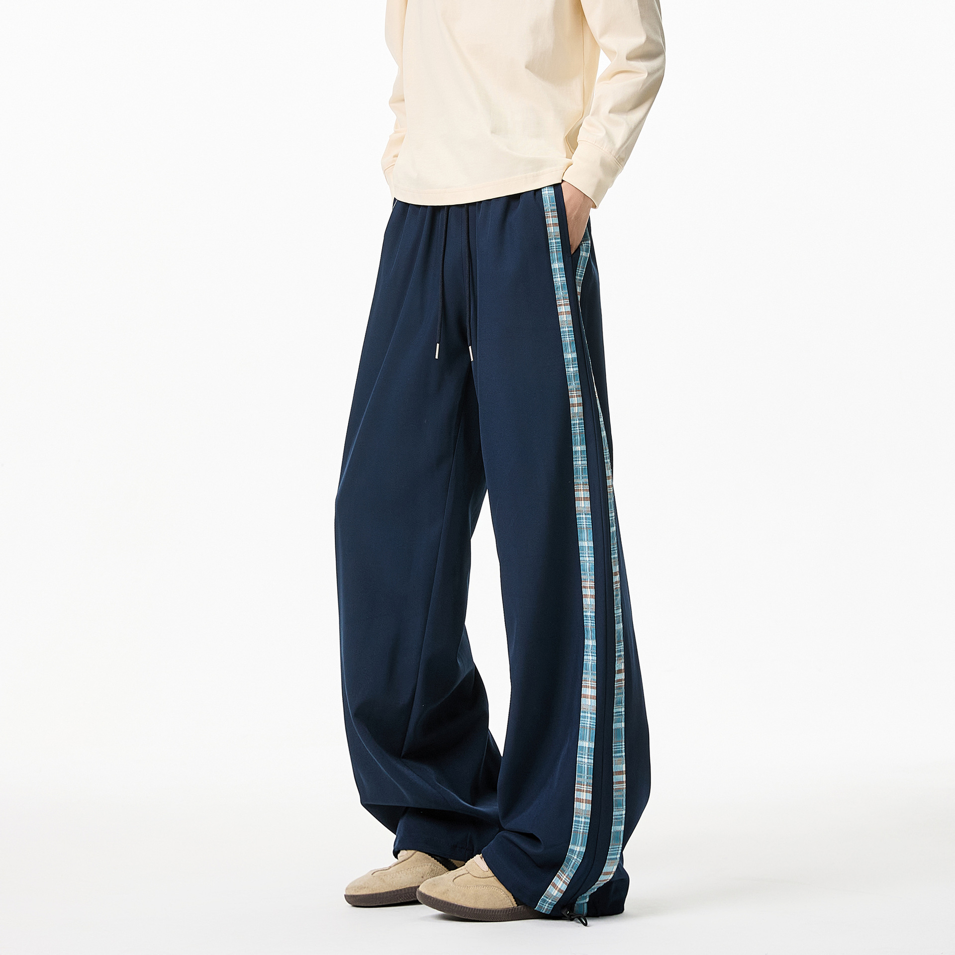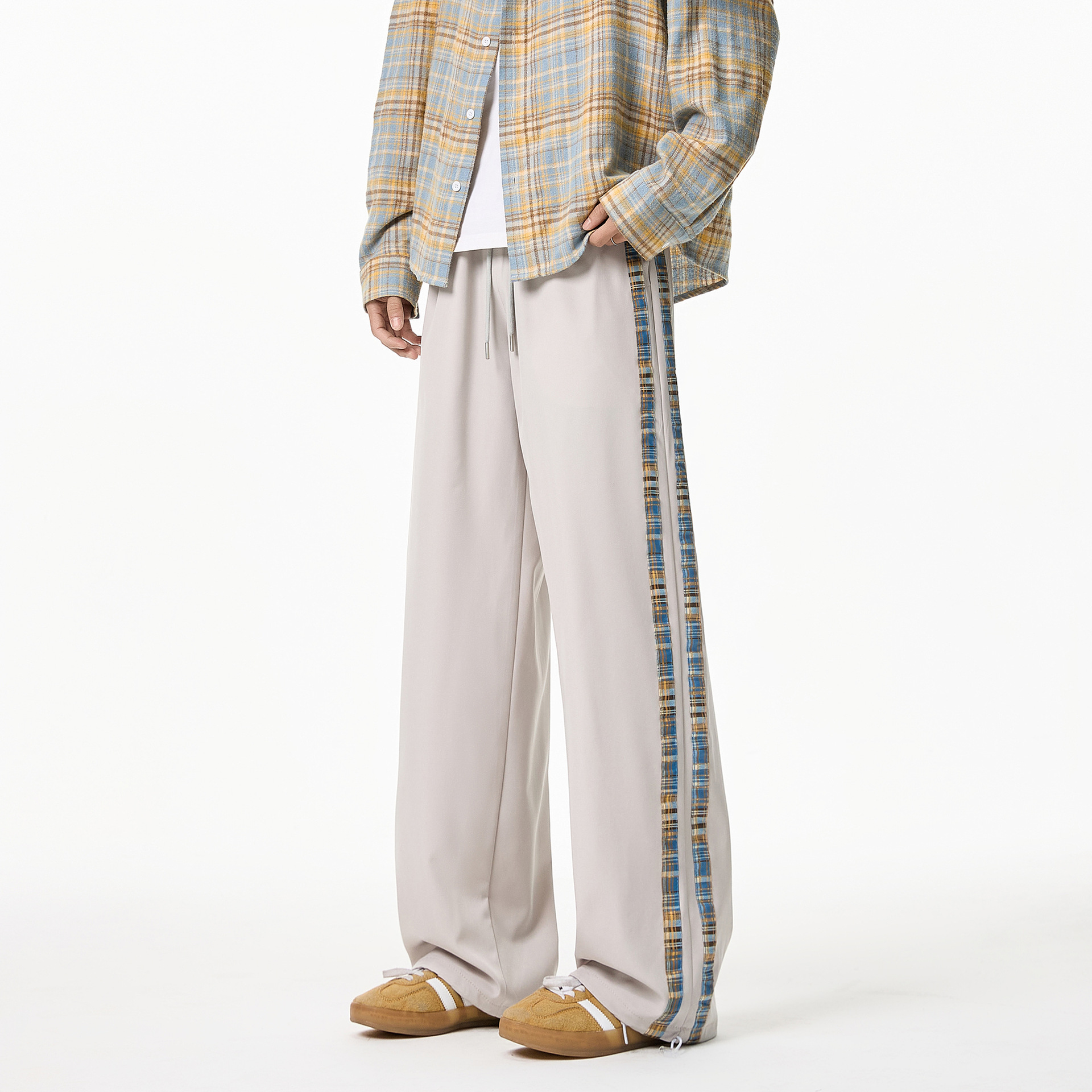 리본 격자 무늬 바느질 바지 남자 2025 봄 새로운 미국 무거운 유행 브랜드 느슨한 직선 캐주얼 스포츠 바지