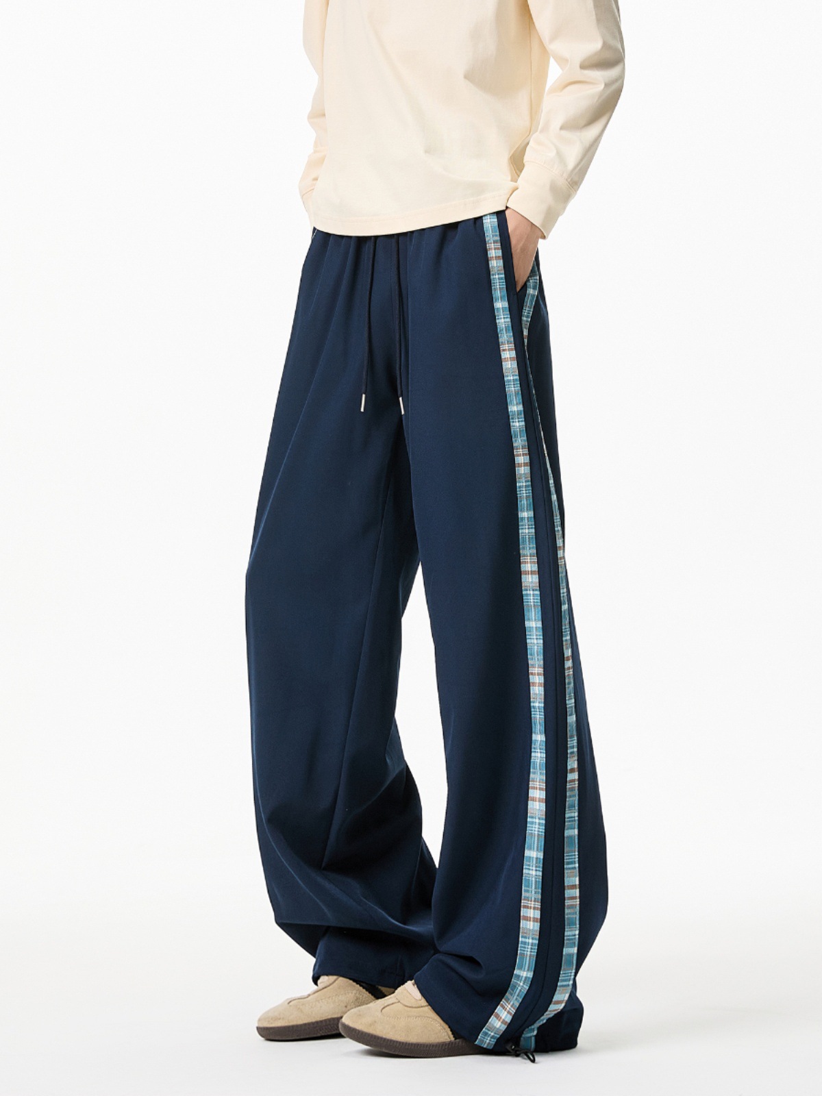 리본 격자 무늬 바느질 바지 남자 2025 봄 새로운 미국 무거운 유행 브랜드 느슨한 직선 캐주얼 스포츠 바지스토어 가기