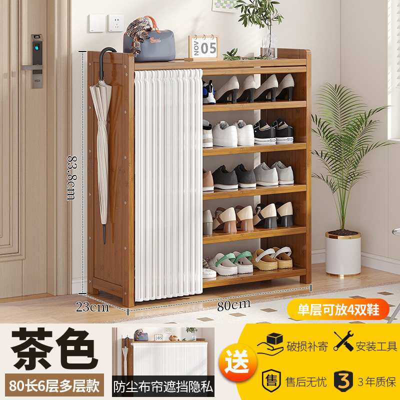 • 브라운 80장 6단 다층 신발장 [문화이트 거즈커튼]