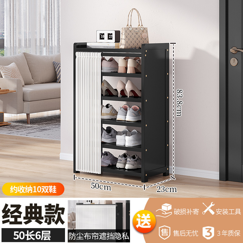 • 블랙 50장 6단 다층 신발장 [문화이트 거즈커튼]