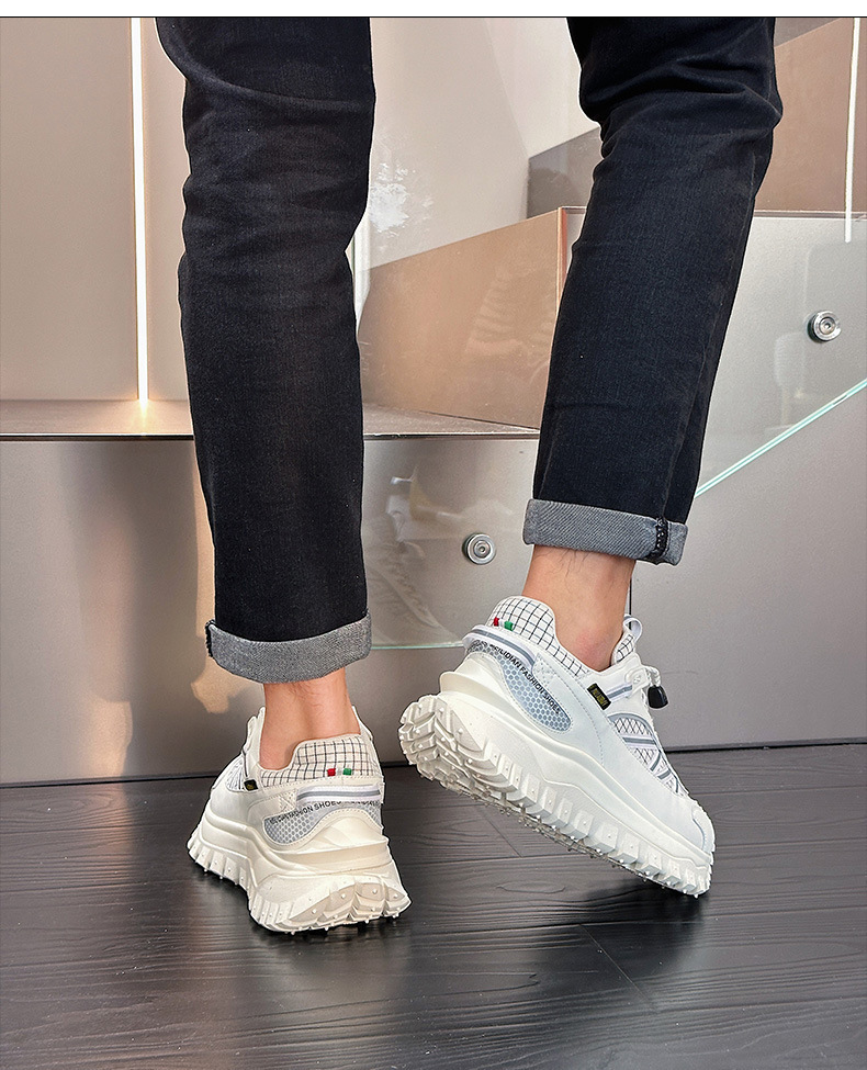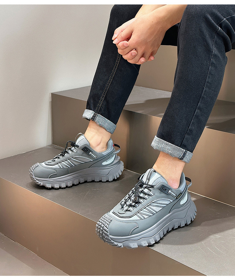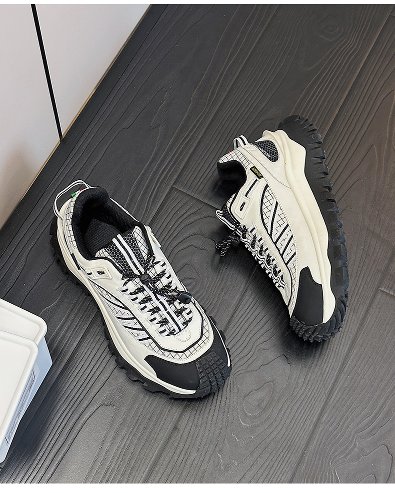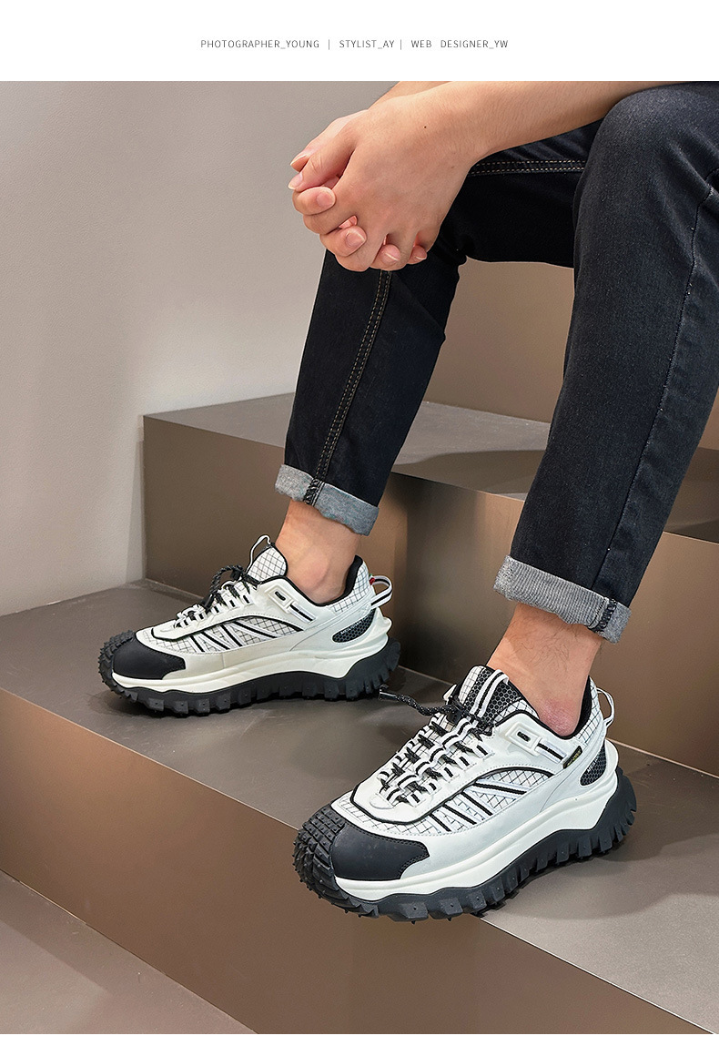 남성용 아빠 신발 2025 봄 신상품 천연 가죽 두꺼운 밑창 두리안 신발 야외 등산 스포츠 남성 신발 키높이 미끄럼 방지스토어 가기