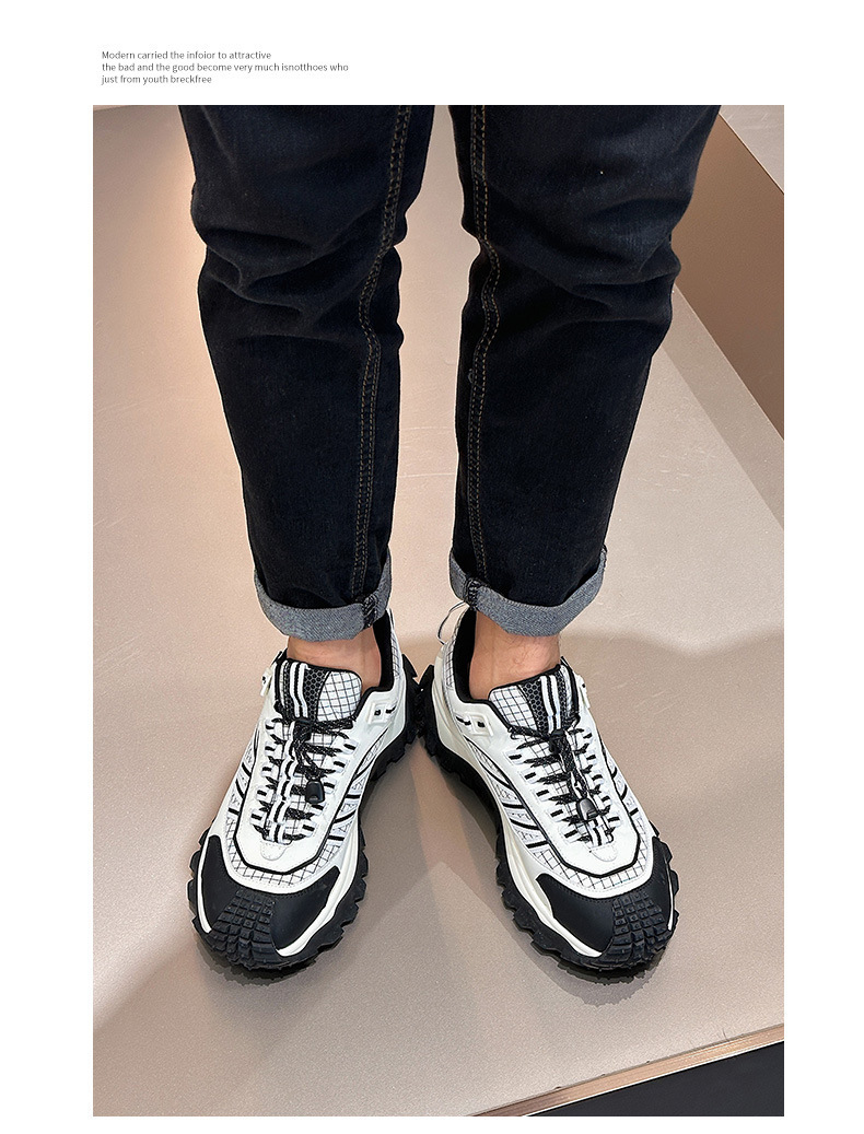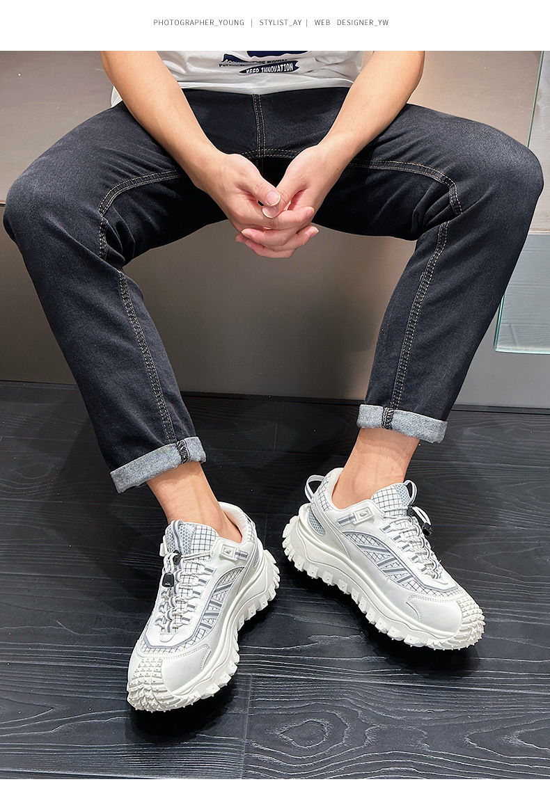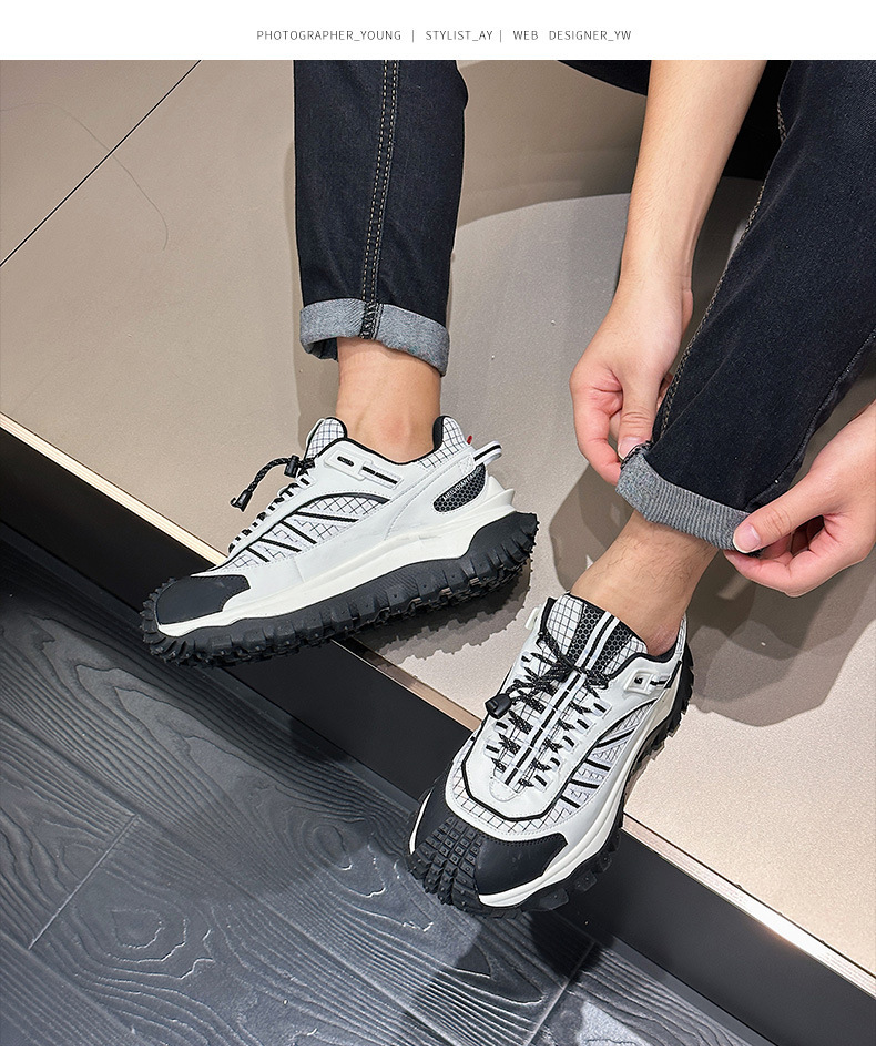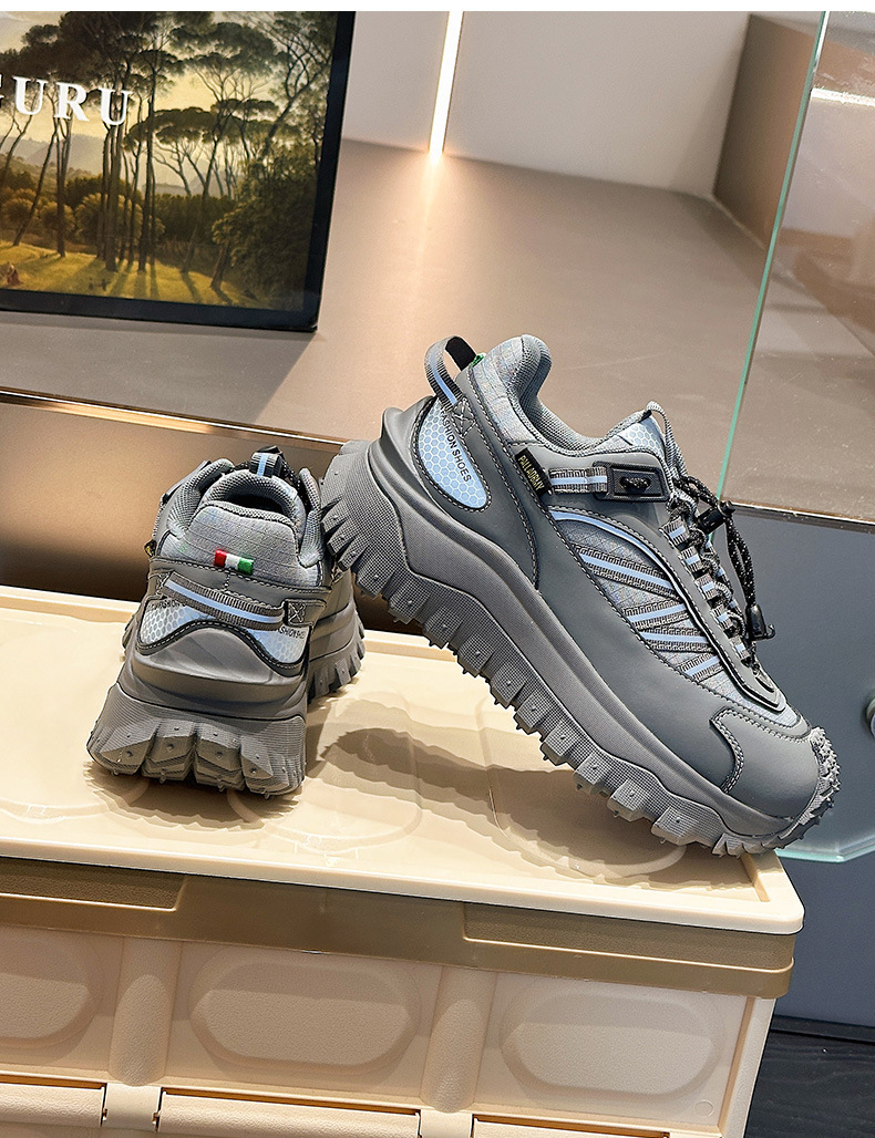 남성용 아빠 신발 2025 봄 신상품 천연 가죽 두꺼운 밑창 두리안 신발 야외 등산 스포츠 남성 신발 키높이 미끄럼 방지스토어 가기