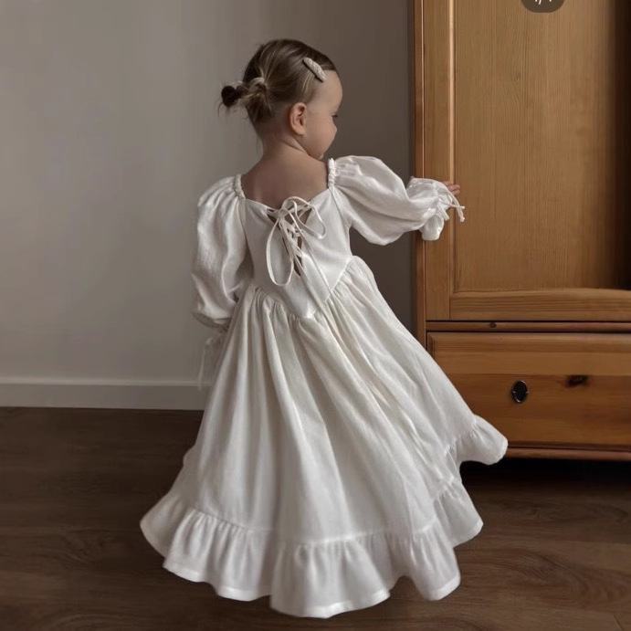 소녀 유럽과 미국 스타일 2025 봄과 가을 새로운 원피스 소녀 면화와 리넨 로리타 스커트 궁전 공주 원피스스토어 가기