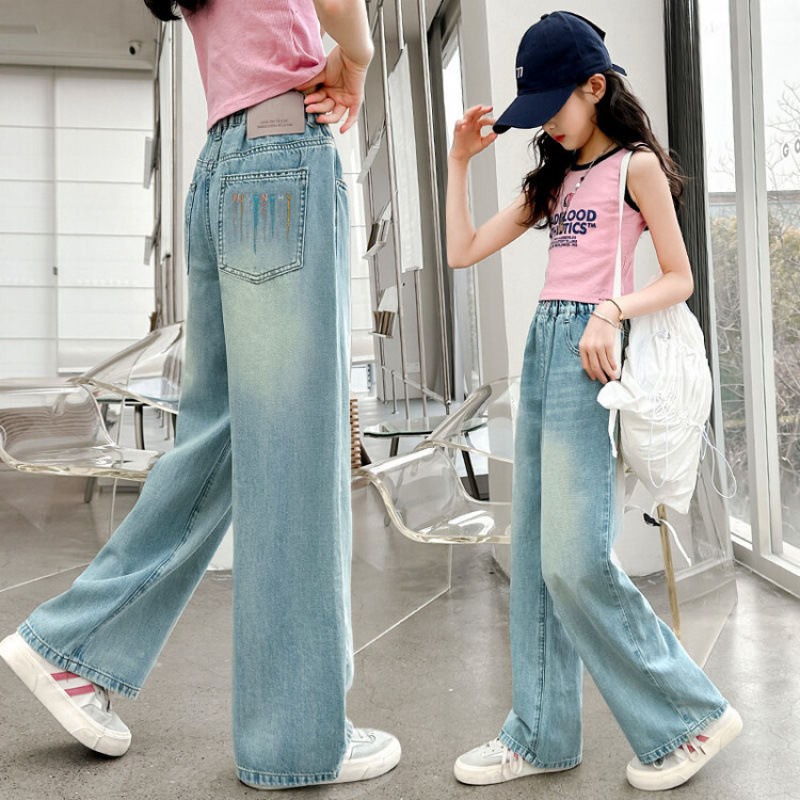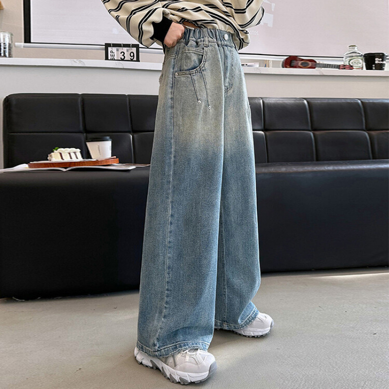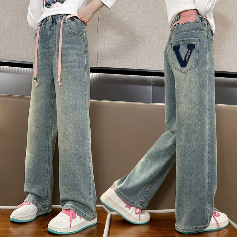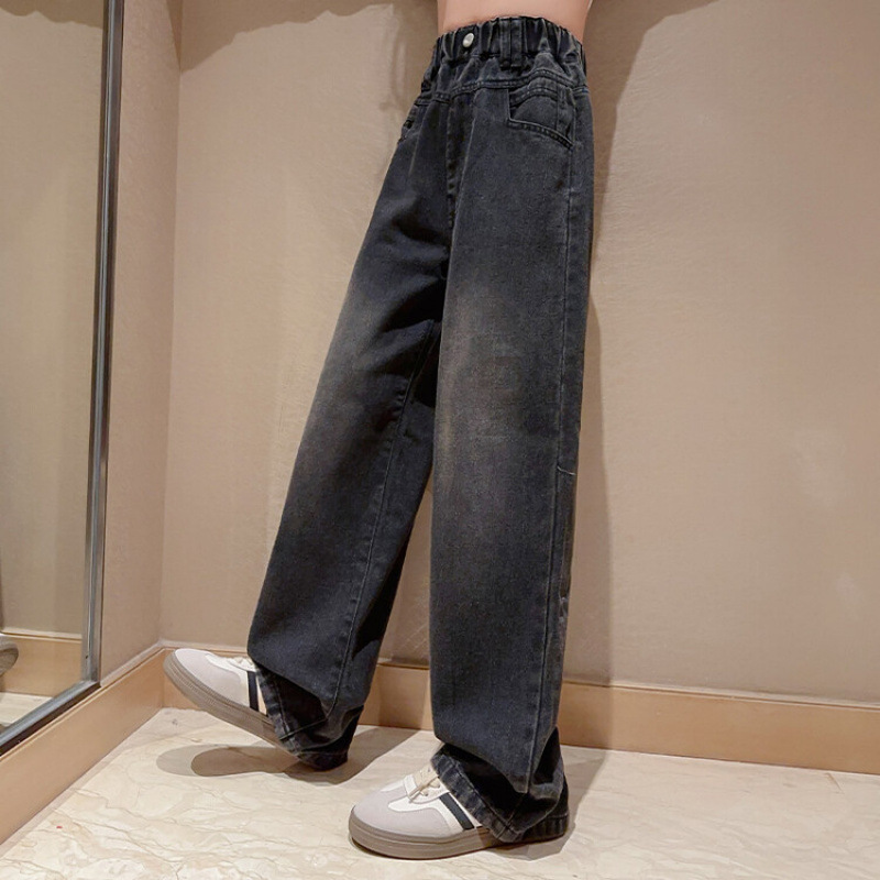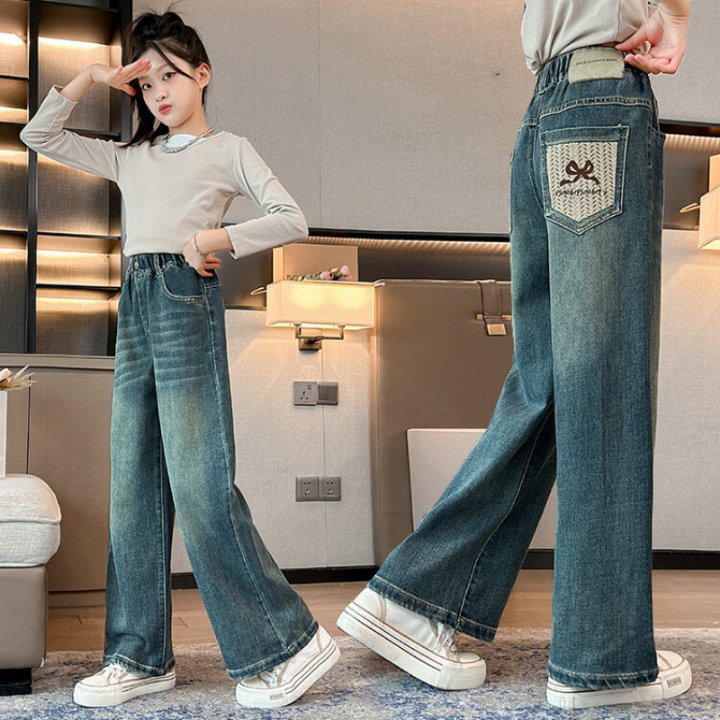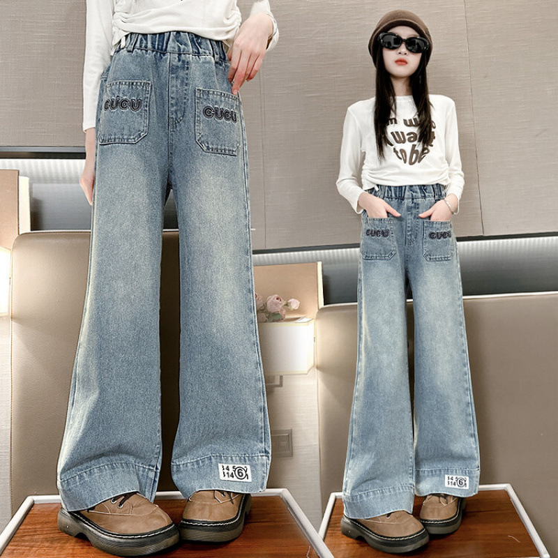 소녀 청바지 가을 2025 새로운 어린이 넓은 다리 바지 큰 어린이 느슨한 서양식 바지 봄과 가을 스트레이트 바지스토어 가기