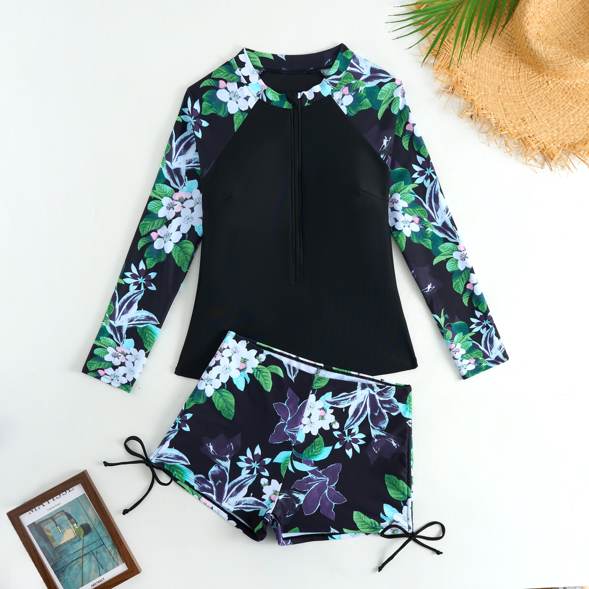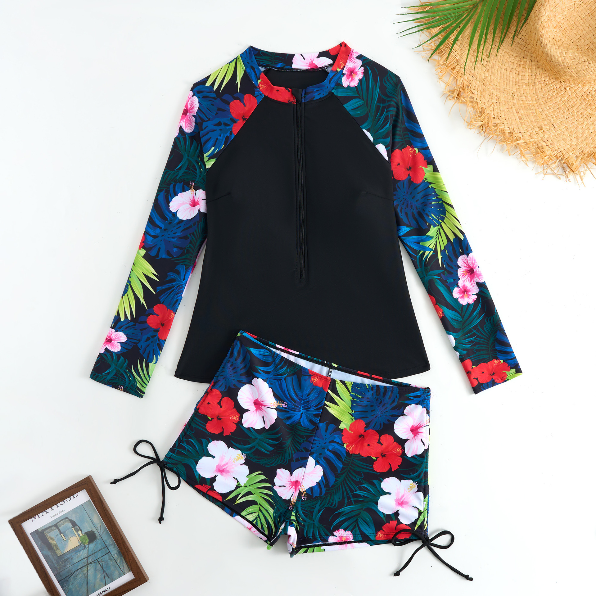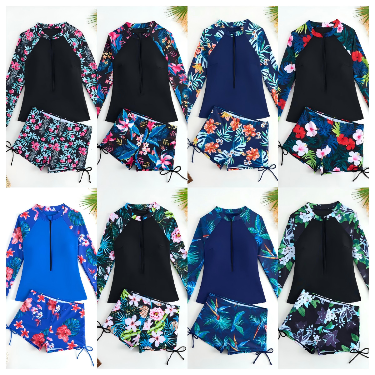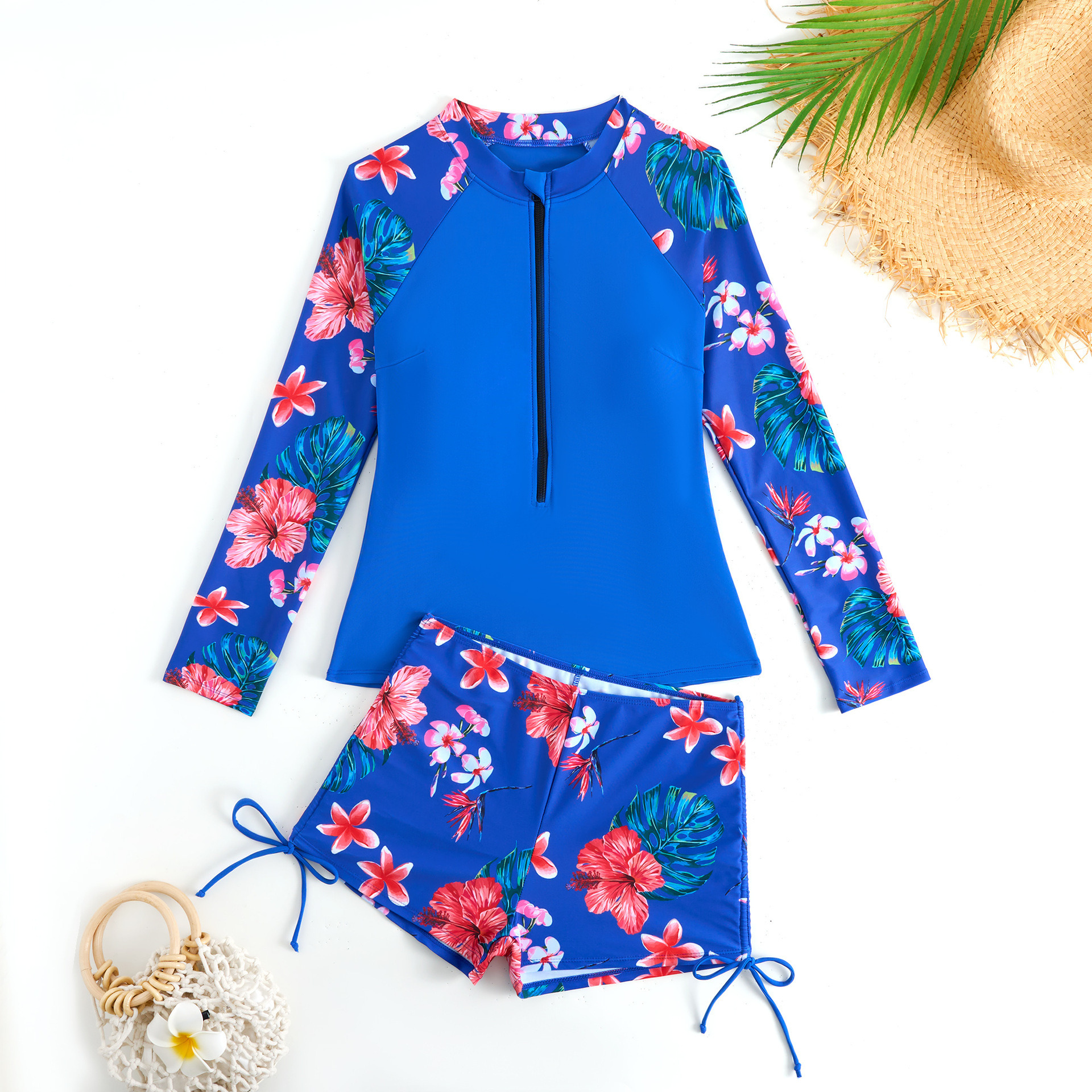 새로운 유럽과 미국의 수영복 2025 러시아 긴팔 스플릿 스포츠 경쟁 프린트 수영복 여성 아마존 잠수복스토어 가기