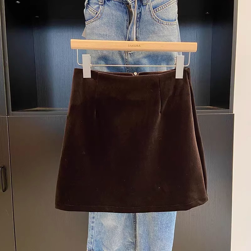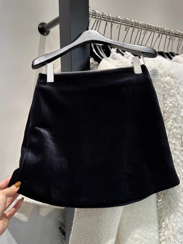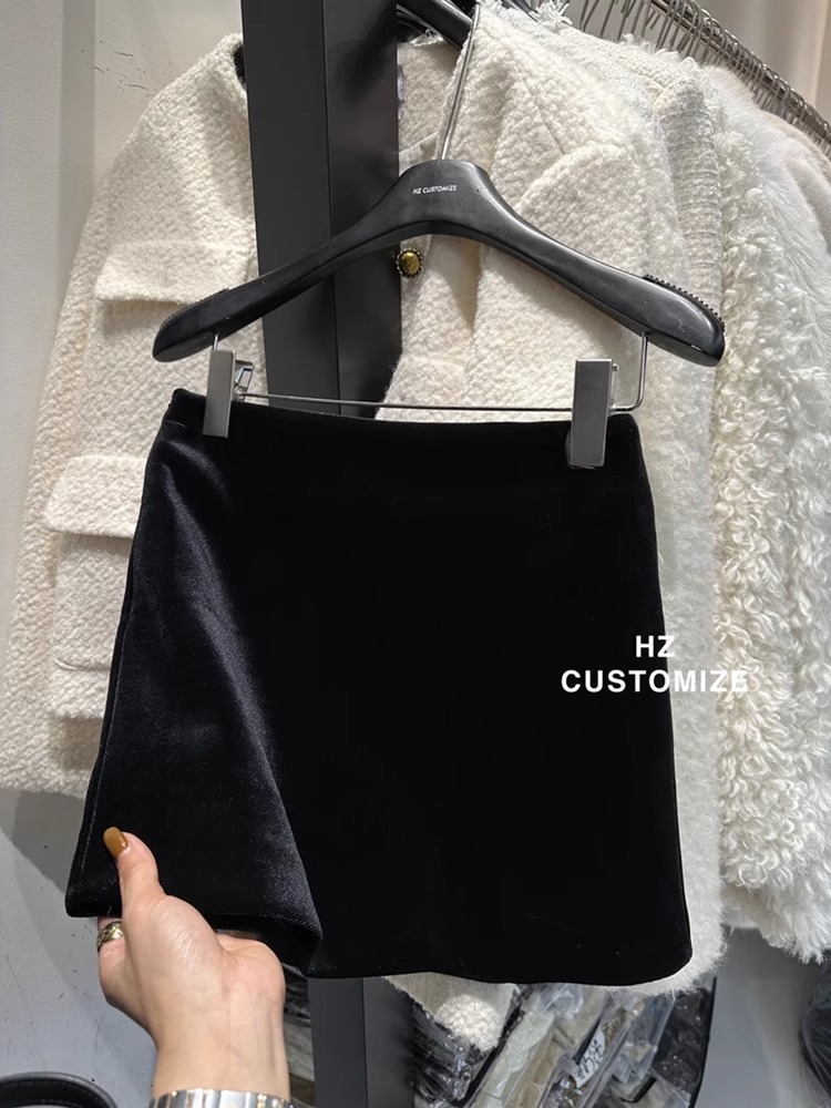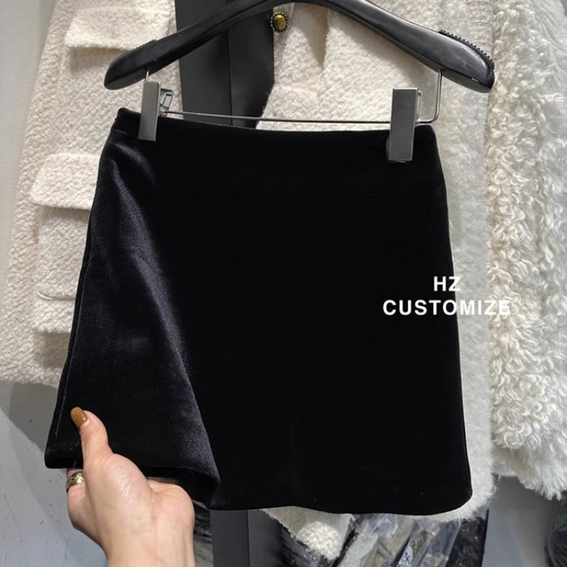 Maillard 블랙 벨벳 스커트 여성의 봄과 가을 우아한 올 매치 높은 허리 슬리밍 엉덩이 미끄럼 방지 스커트스토어 가기
