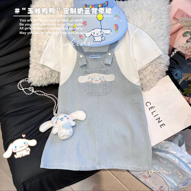 소녀 2025 서양식 캐주얼 원피스 빅 키즈 여름 새로운 유행 만화 가짜 투피스 스티칭 스트랩 원피스스토어 가기