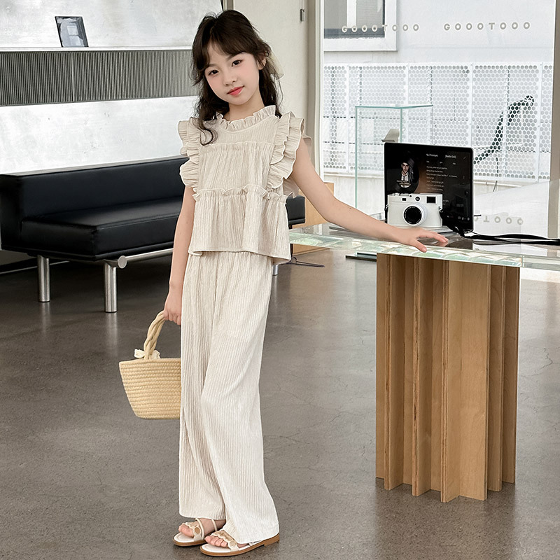 소녀 인형 셔츠 세트 여름 2025 인터넷-유명한 소녀의 시폰 얇은 탑 와이드 레그 바지 2 피스 세트 유행스토어 가기