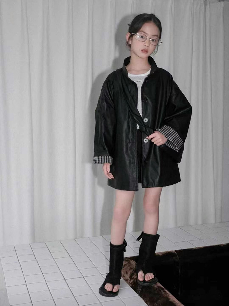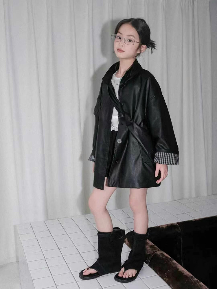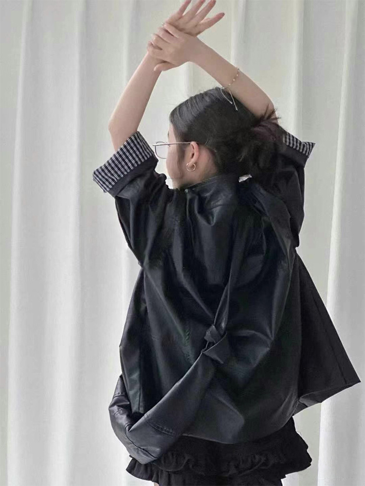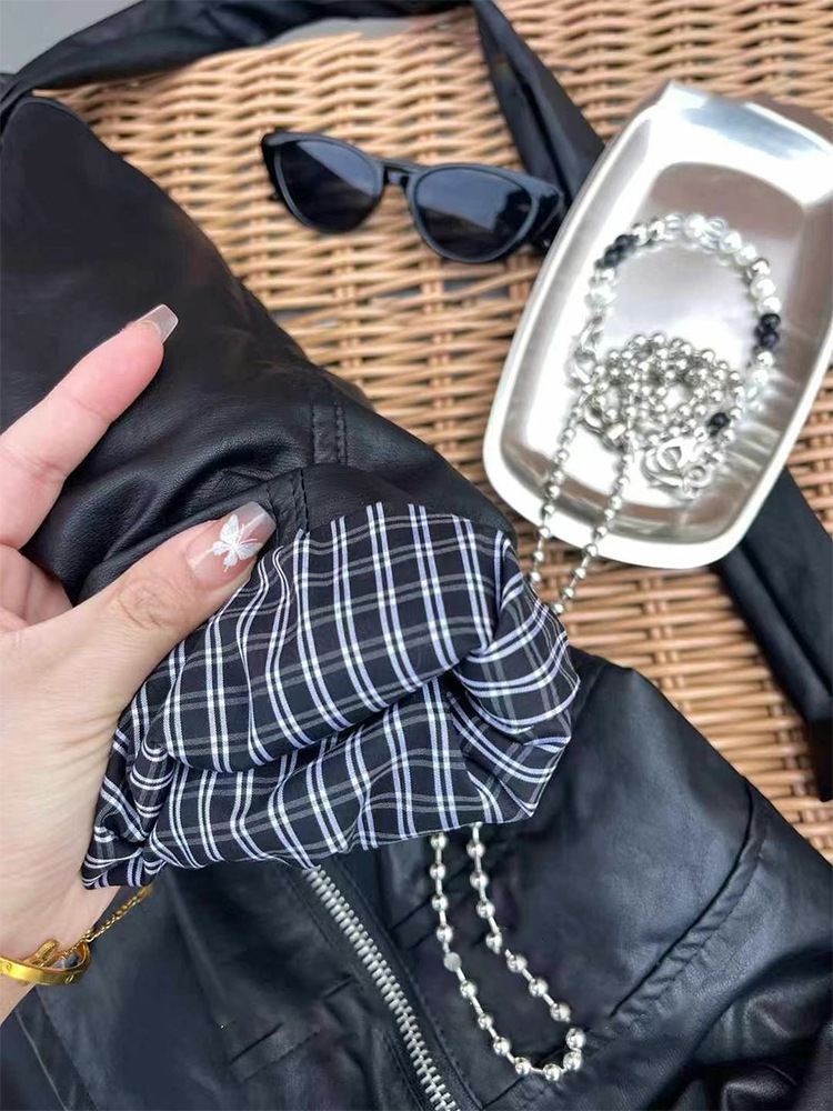 한국 스타일 격자 무늬 스티칭 PU 가죽 코트 여성 2025 봄과 가을 새로운 올 매치 걸스 패션 세련된 재킷스토어 가기