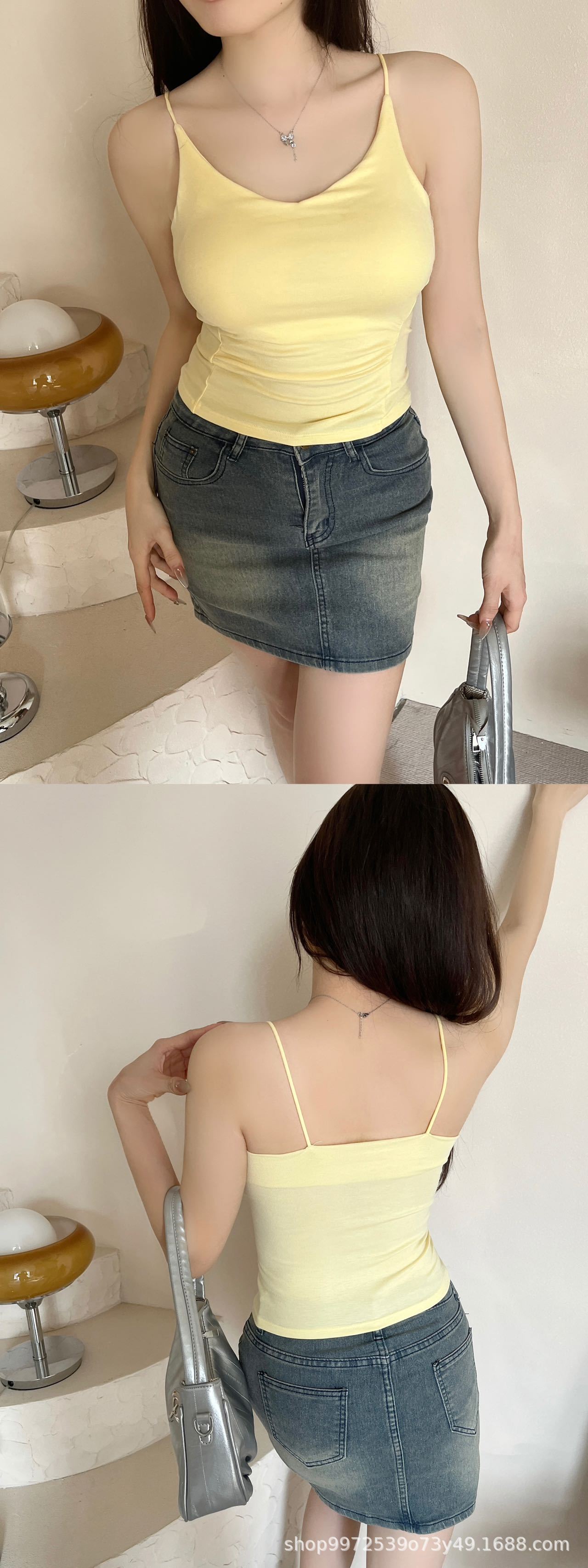 슬링베이스 조끼 여성의 V-Neck 작은 가슴 큰 원피스 고정 코스터 섹시한 내부 탑 아우터 옷걸이