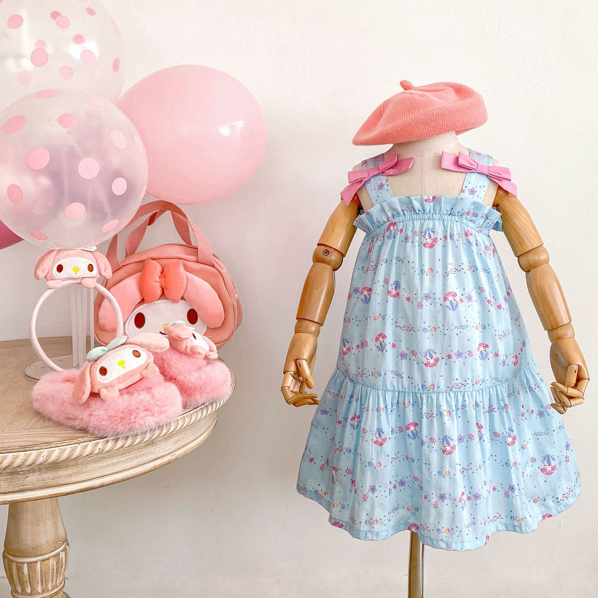 여자 2025 멜로디 여름 새 여자 달콤한 만화 조끼 보우 서스펜더 드레스스토어 가기
