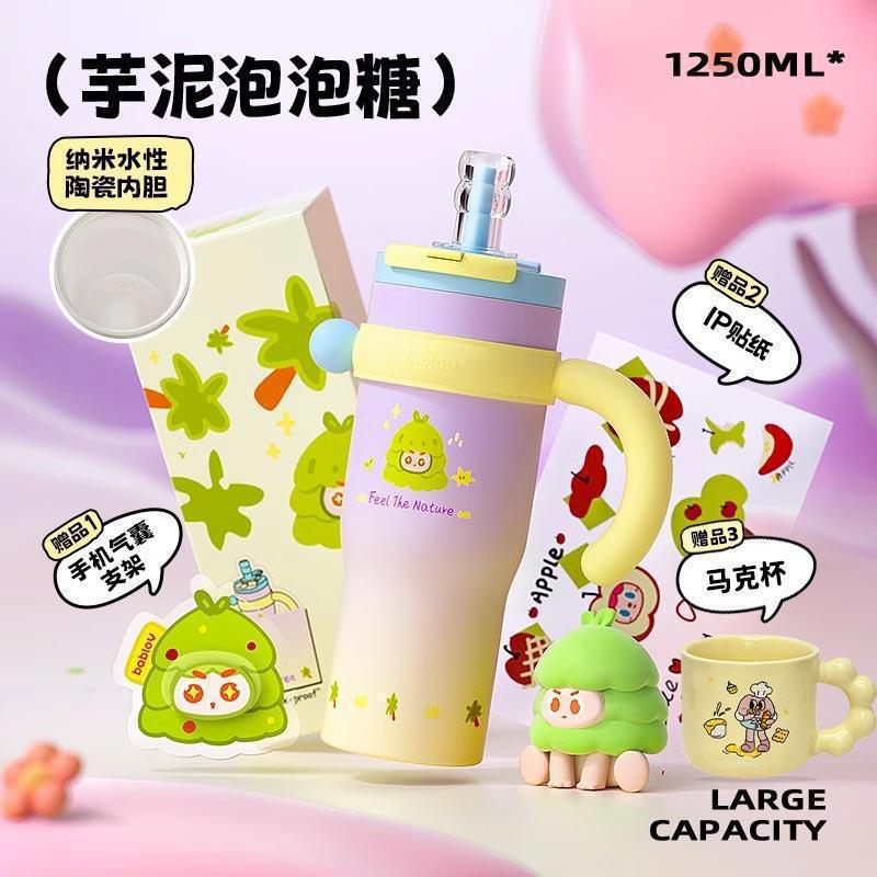 큰 맥 밀짚 보온병 컵 대용량 물 컵 여자 톤 큰 물병 세라믹 냉장 아이스 컵