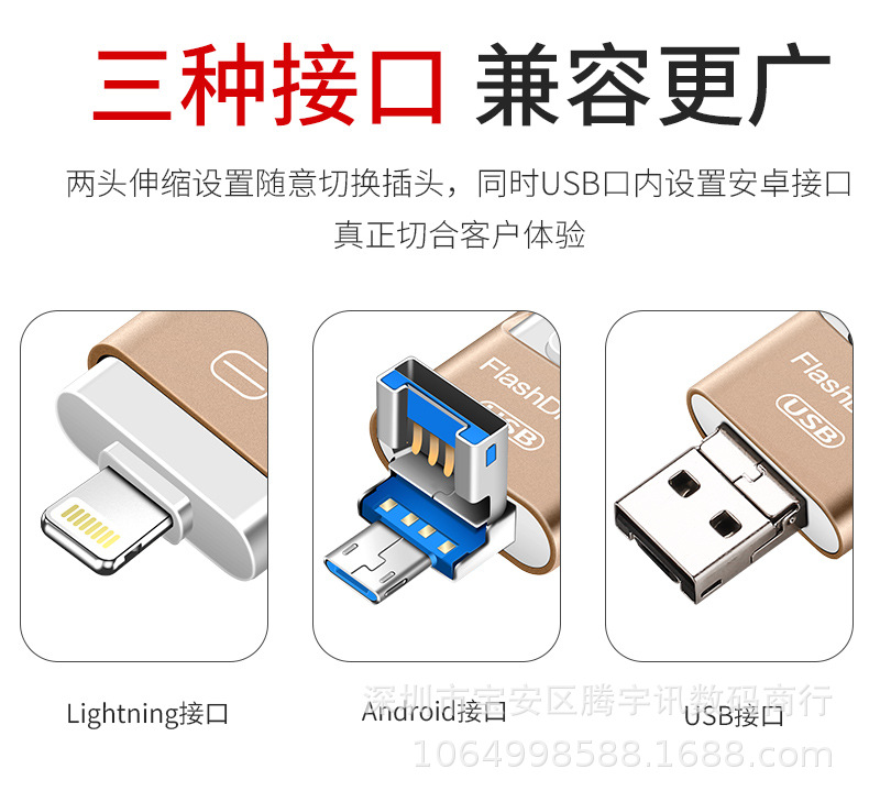 애플 안드로이드 컴퓨터 typec 인터페이스 휴대 전화 U 디스크 32G-64G-128G 푸시 풀 U 디스크 1TB 2TB스토어 가기
