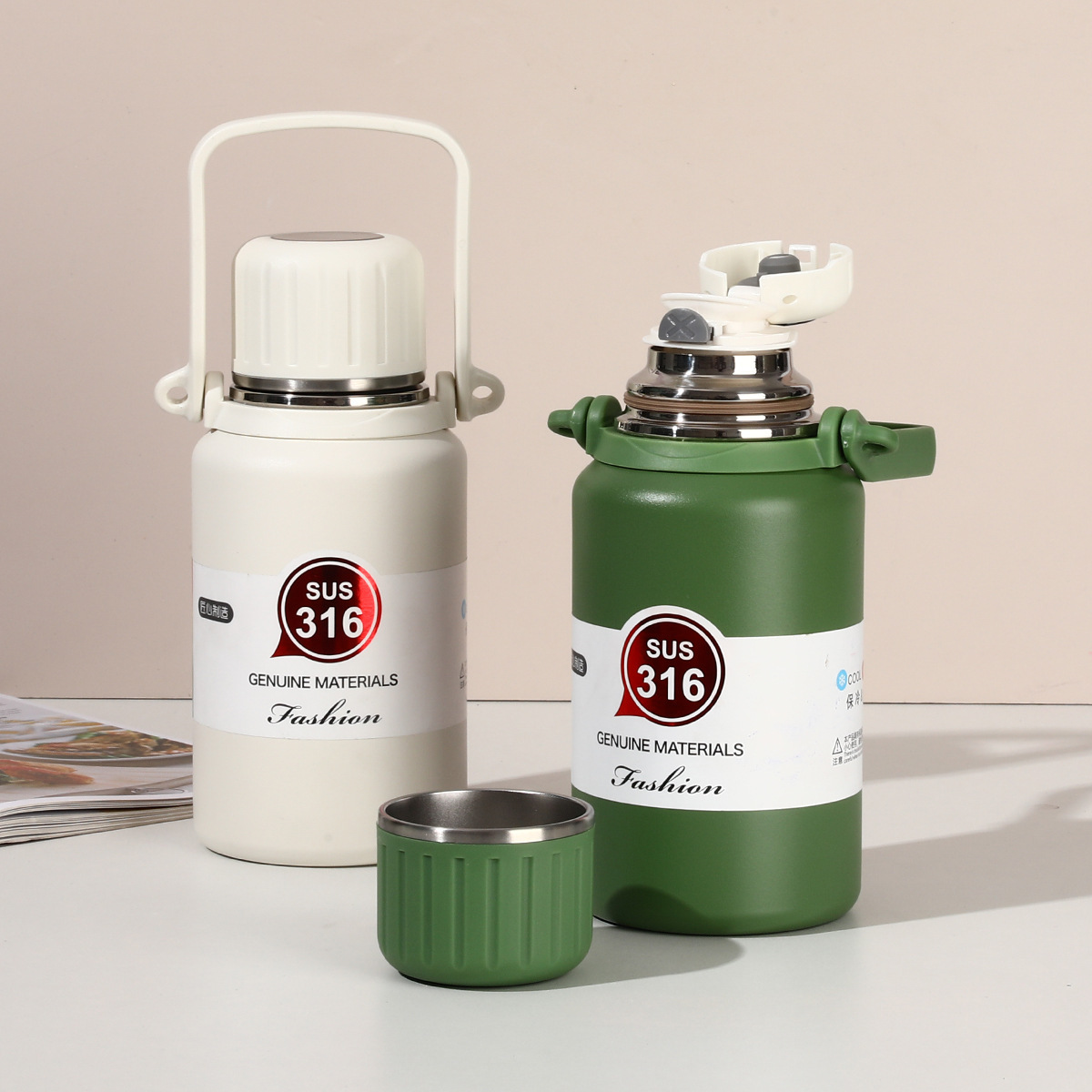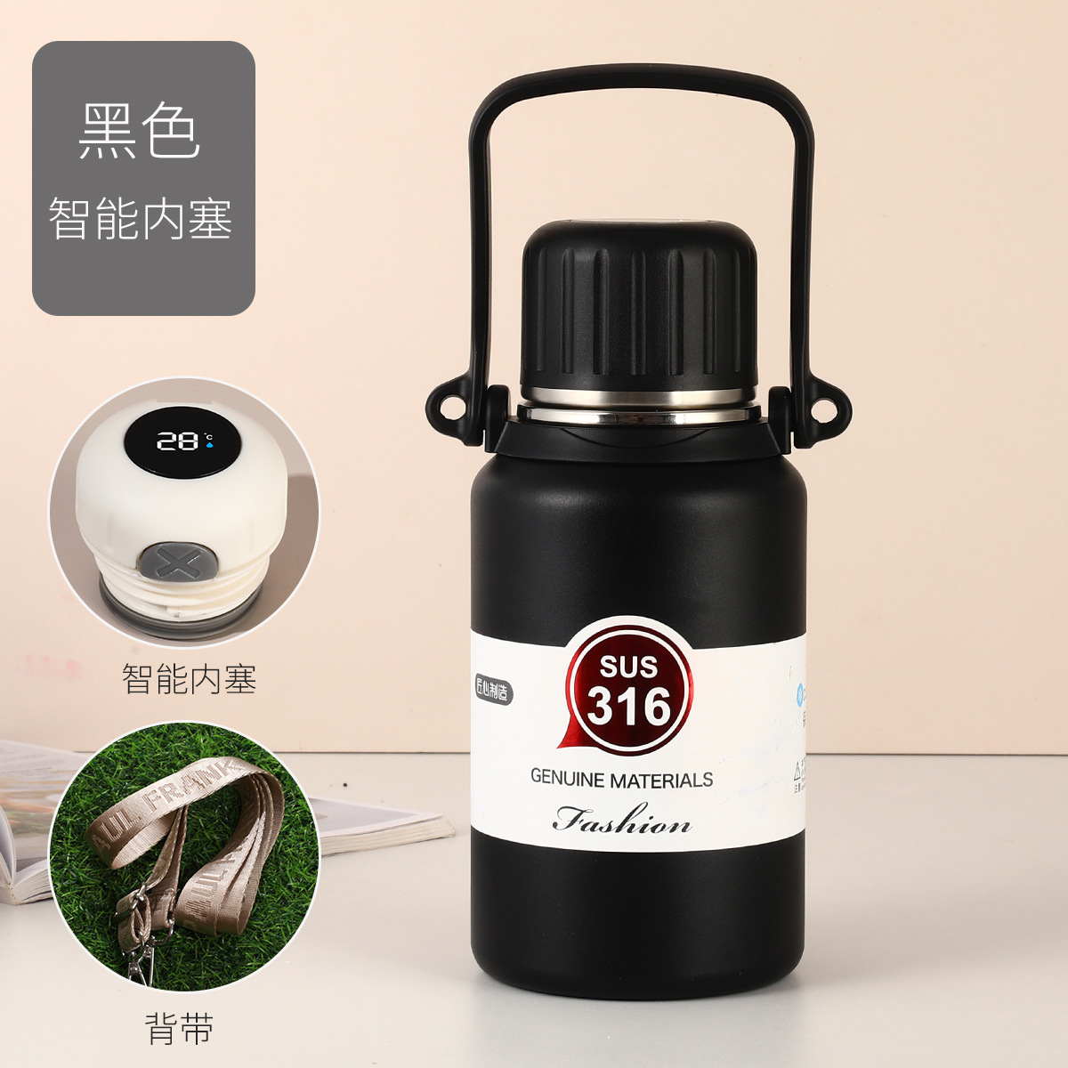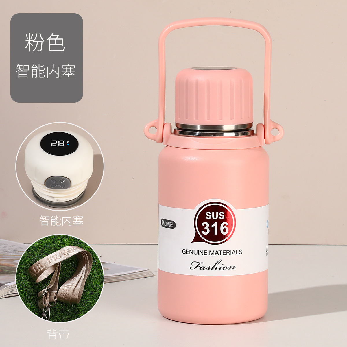 316 스테인리스 대용량 온도 표시 보온병, 고급스러운 디자인의 학생용 야외 식품 등급 스트랩 물병 맞춤 제작스토어 가기
