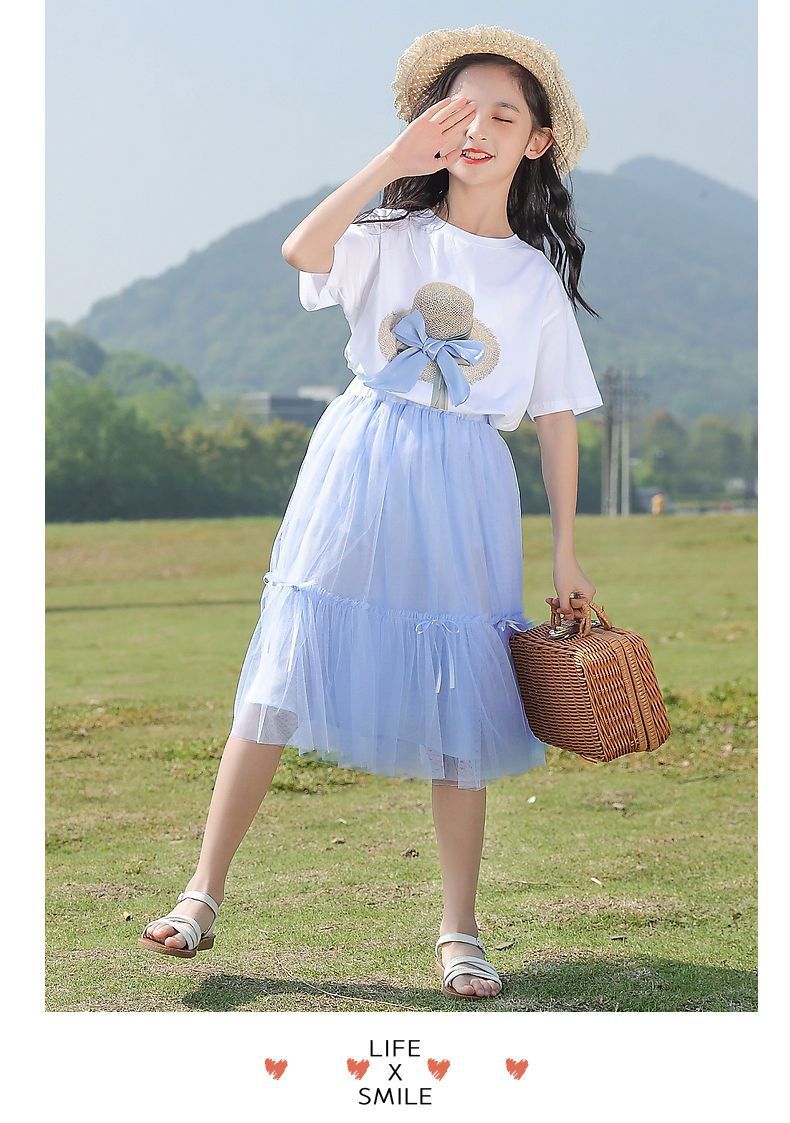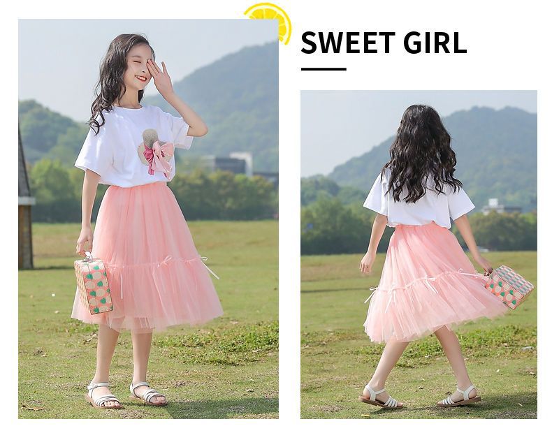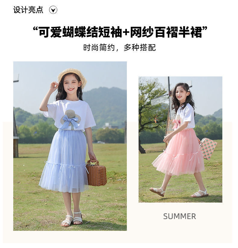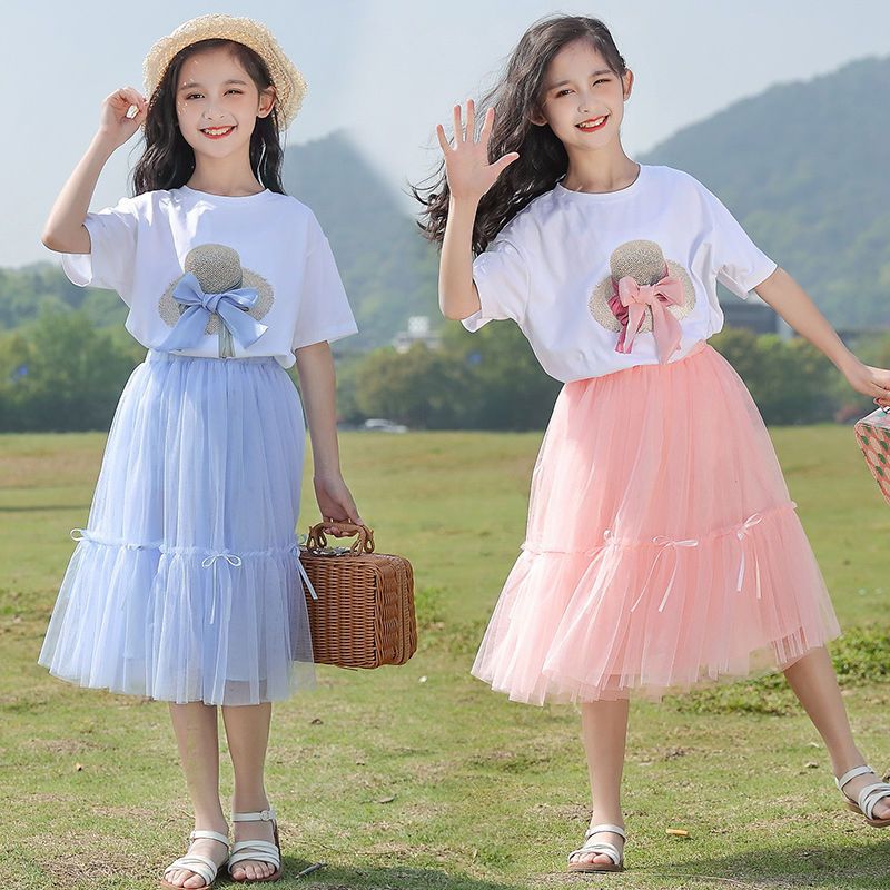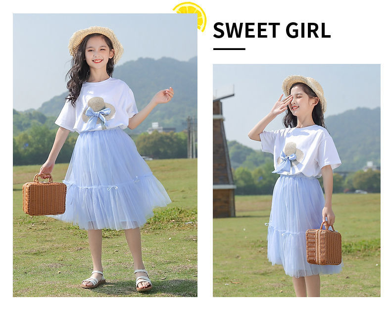 소녀 여름 서양식 원피스 2025 새로운 한국식 어린이 원피스 여름 중대형 어린이 원피스 소녀 투피스 세트