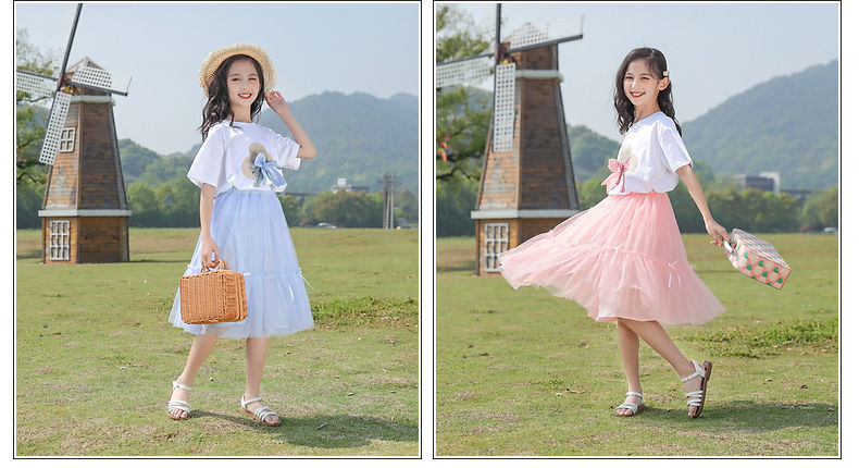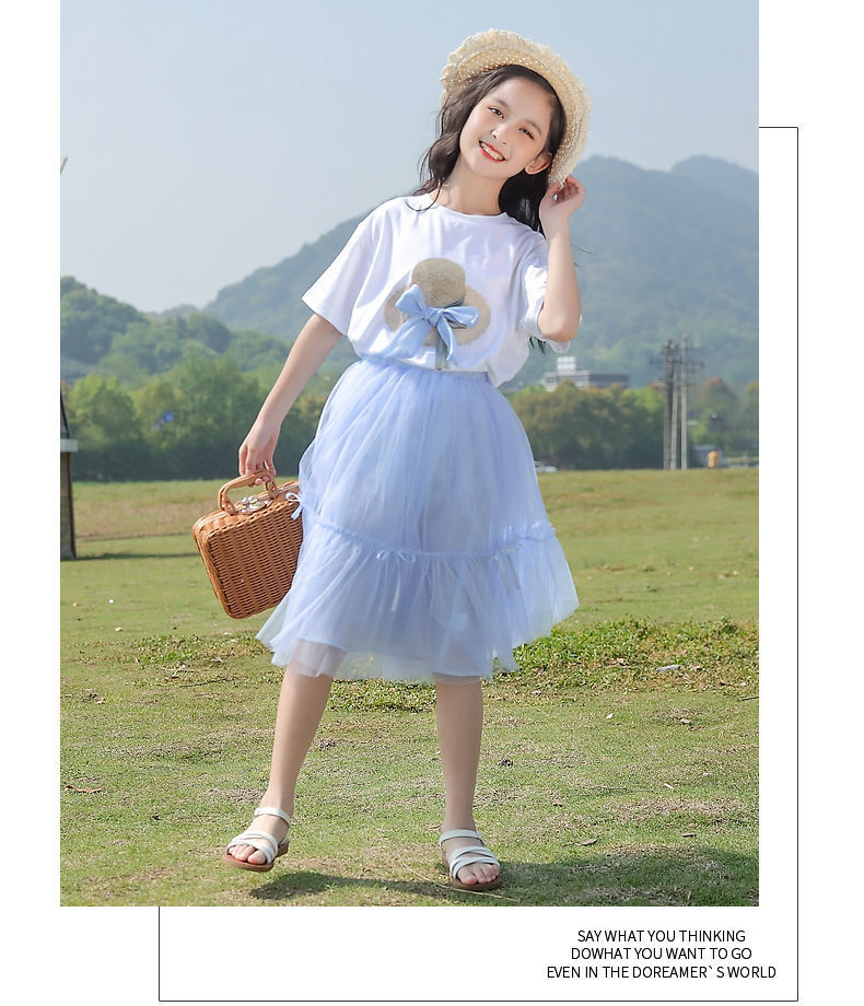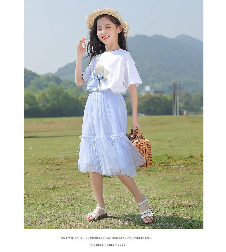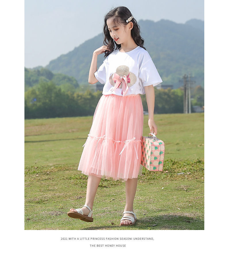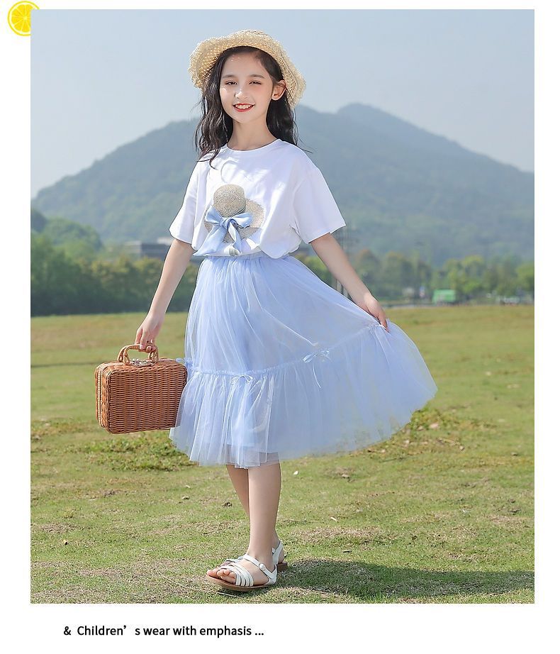 소녀 여름 서양식 원피스 2025 새로운 한국식 어린이 원피스 여름 중대형 어린이 원피스 소녀 투피스 세트