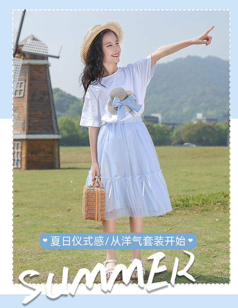 소녀 여름 서양식 원피스 2025 새로운 한국식 어린이 원피스 여름 중대형 어린이 원피스 소녀 투피스 세트스토어 가기