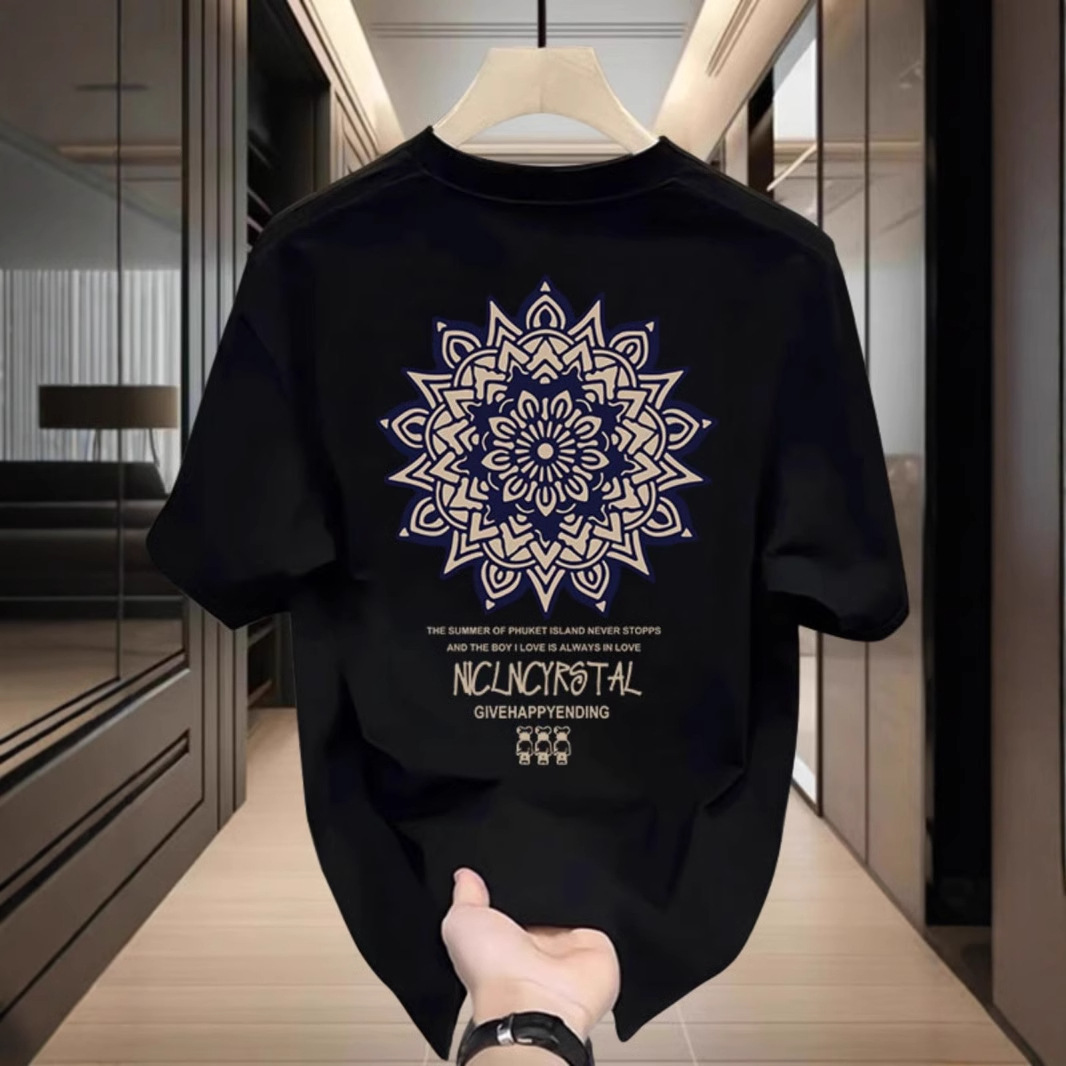 유럽과 미국의 패션 브랜드 반팔 Ins Pure Cotton Summer 새로운 남성용 프린트 티셔츠 남성용 트렌디 남성용 올 매치 라운드 넥 티셔츠