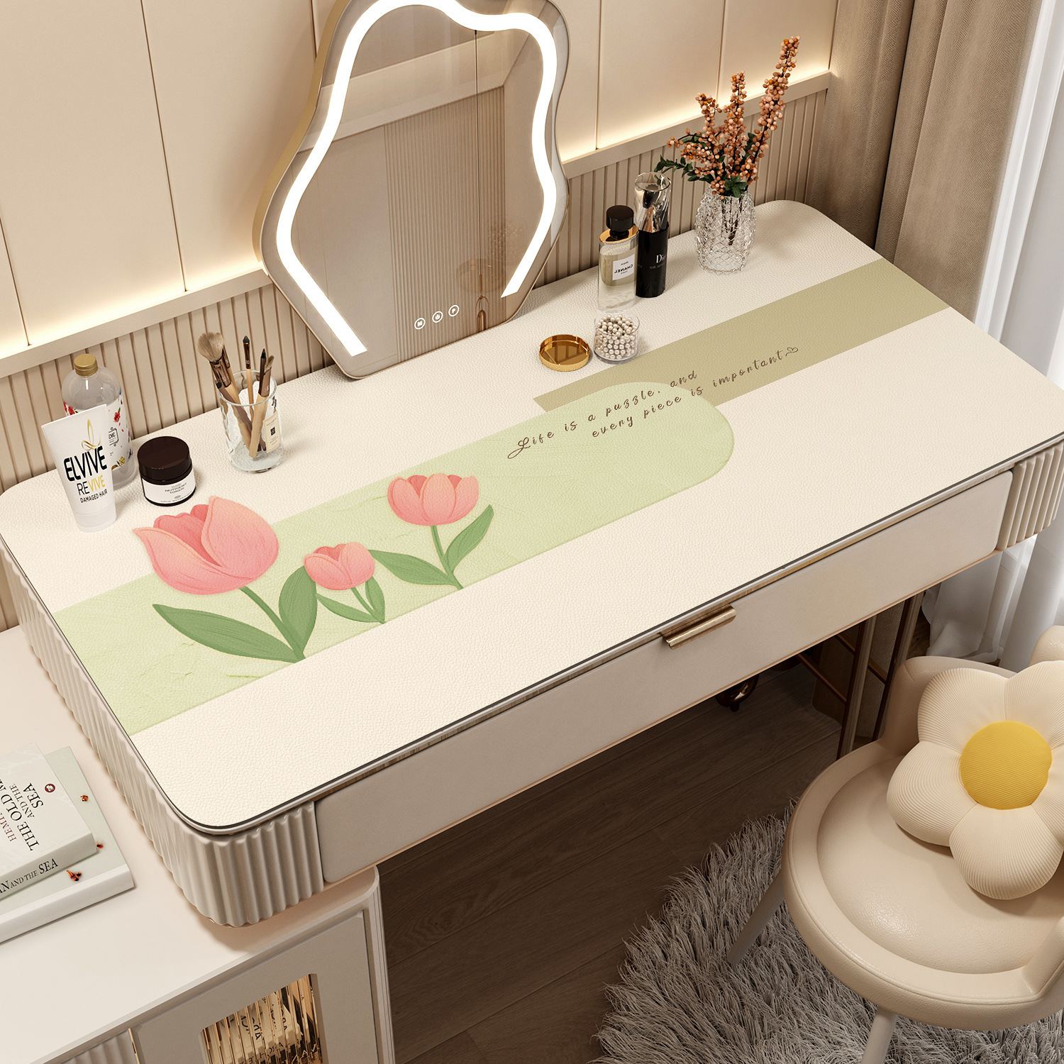 높은 가치의 드레싱 테이블 매트 라이트 럭셔리 하이 엔드 센스 데스크 데스크톱 보호 매트 컷 컷 테이블 아트 네일 아트 메이크업 테이블 테이블 테이블 테이블 천스토어 가기