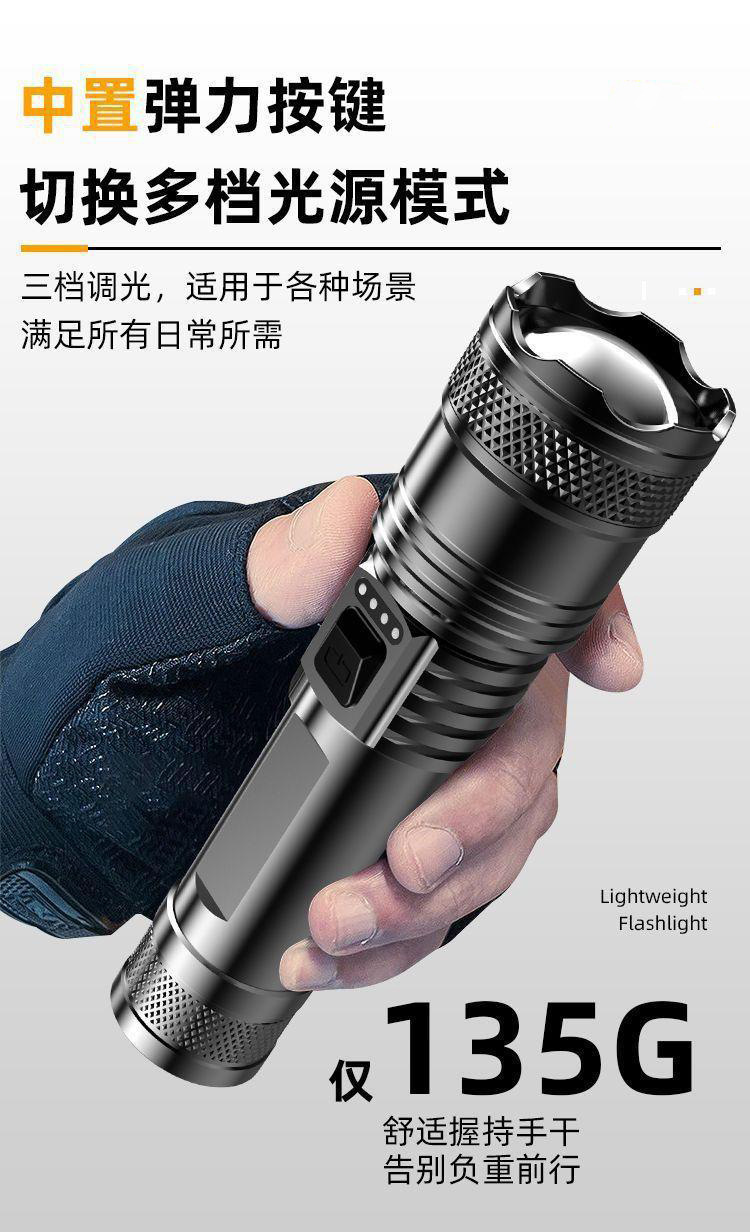 야외 손전등, 강한 빛 레이저 총, 초장거리 스포트라이트, 다기능 충전식 디지털 디스플레이, 긴 배터리 수명, 소형 손전등