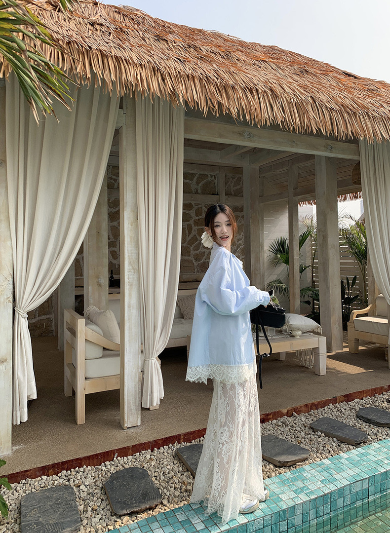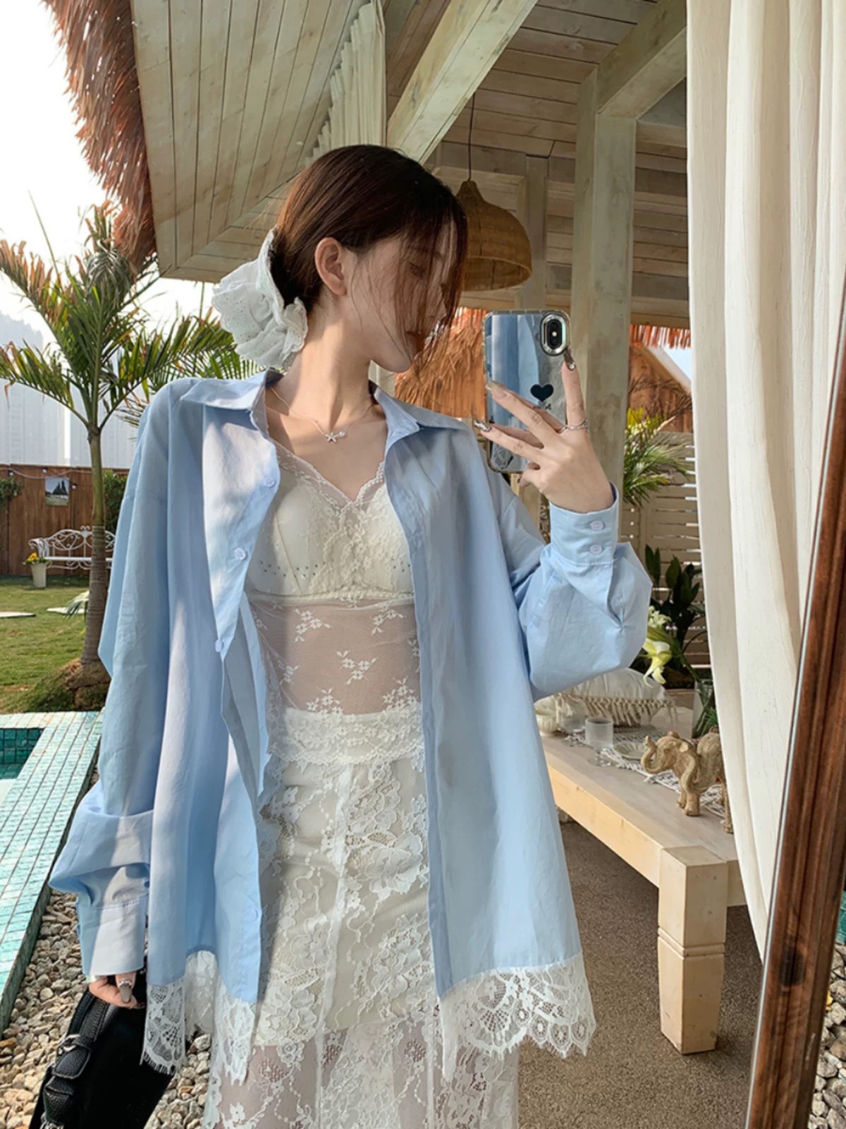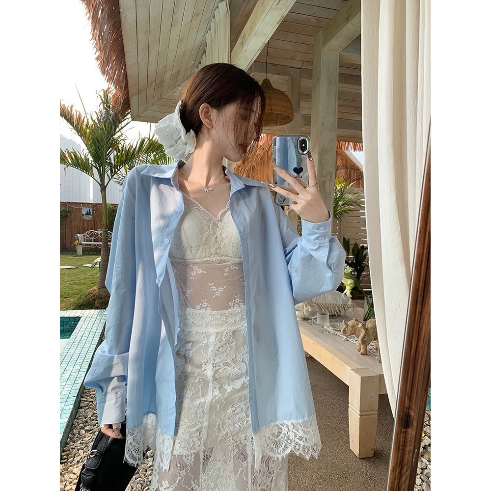 프랑스 스타일 레이스 바느질 머리 긴 소매 셔츠 여성의 이른 봄 한국 스타일 새로운 스타일 우아한 탑