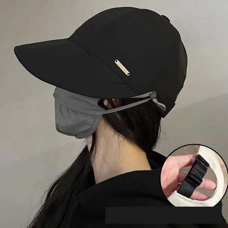 스트랩 매달린 버클 어부 모자 여성의 2025 년 봄과 여름 태양 보호 자외선 보호 태양 모자 일반 검은 태양 모자