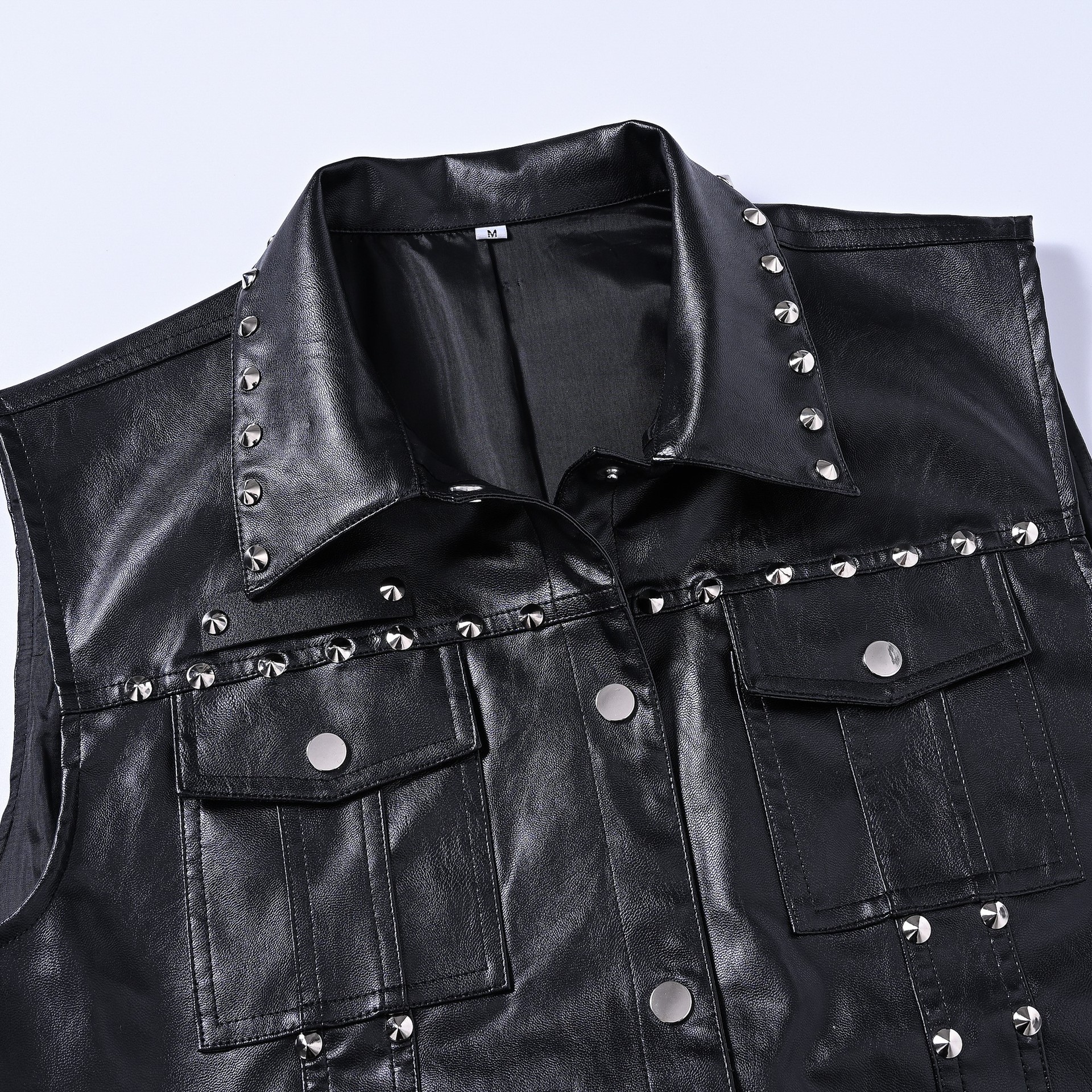 트렌디한 남성 봄, 여름, 가을 조끼 한국식 슬림핏 멋진 리벳 민소매 조끼 트렌디 조끼 크로스보더스토어 가기