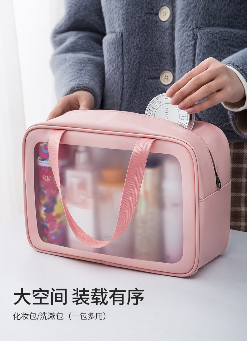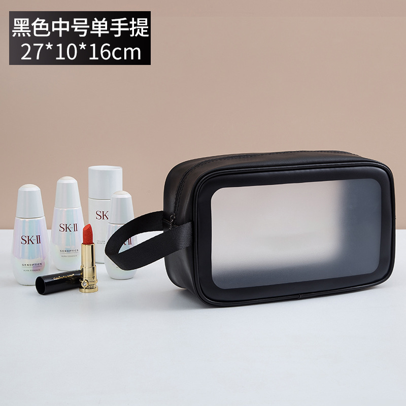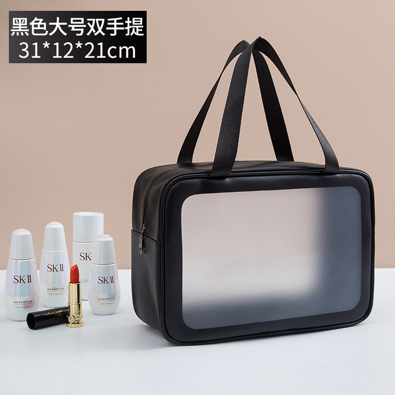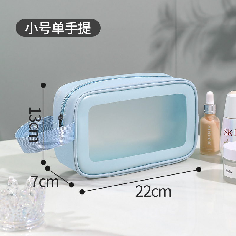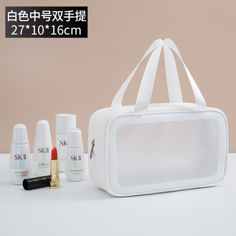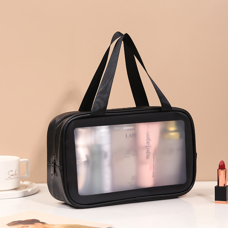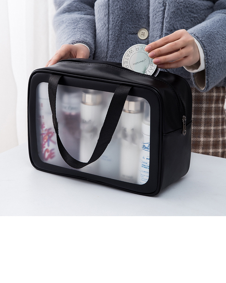 로고가 없는 PU 화장품 가방, 간단하고 휴대 가능하며 대용량 투명 세면 용품 가방, 가정용 여행 화장품 가방 보관 가방