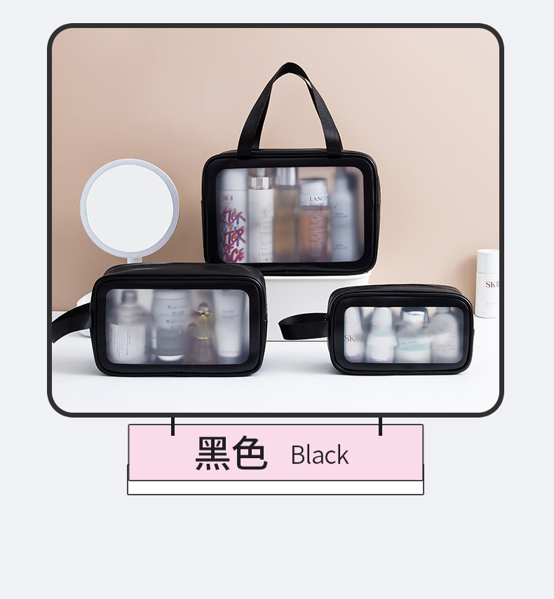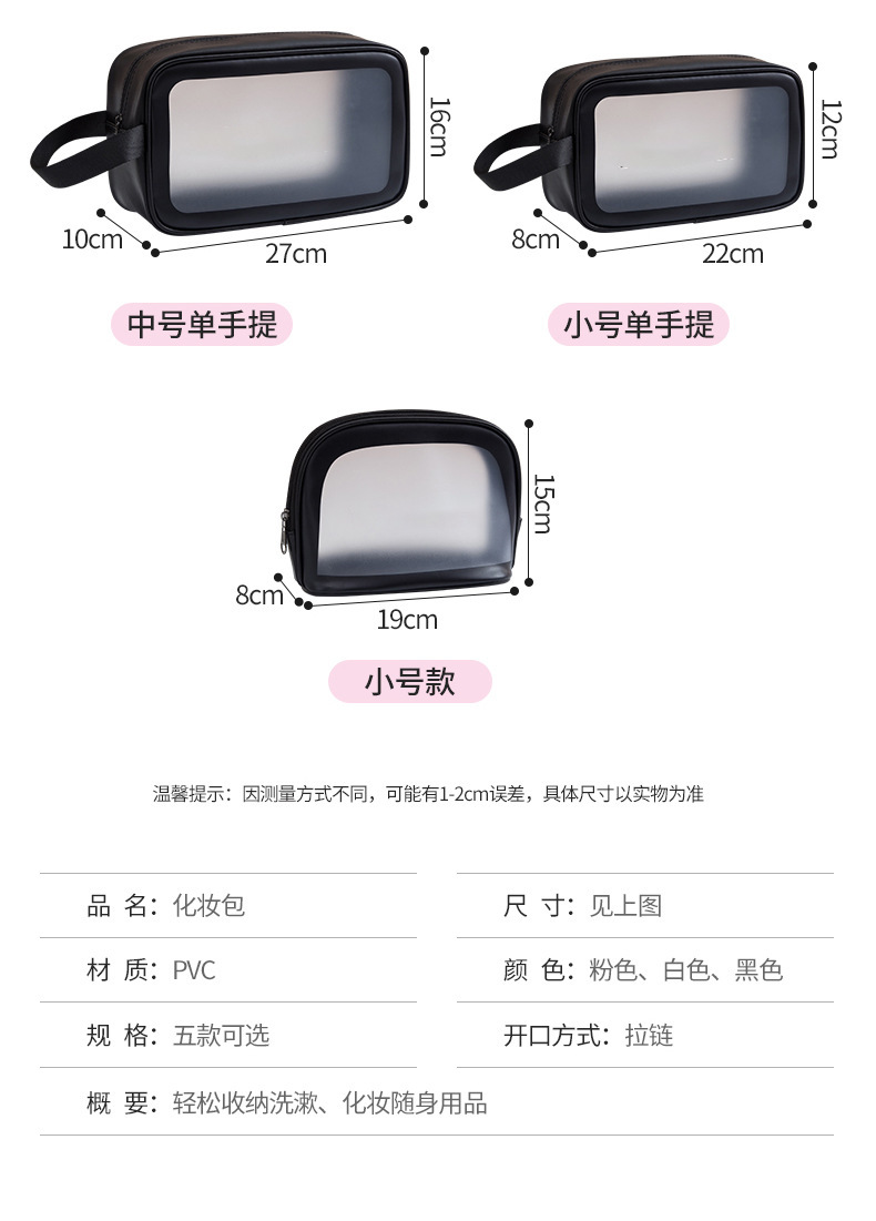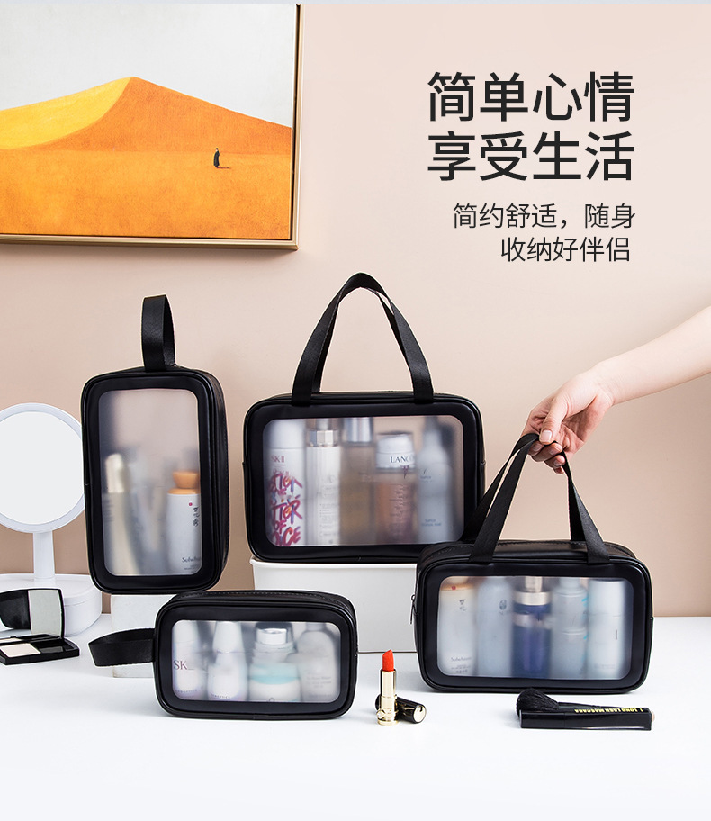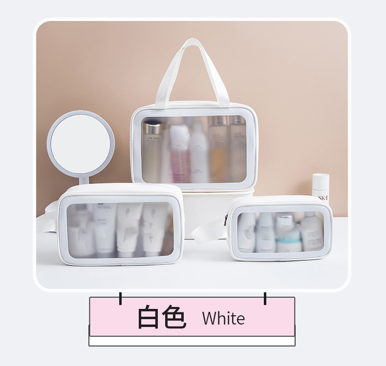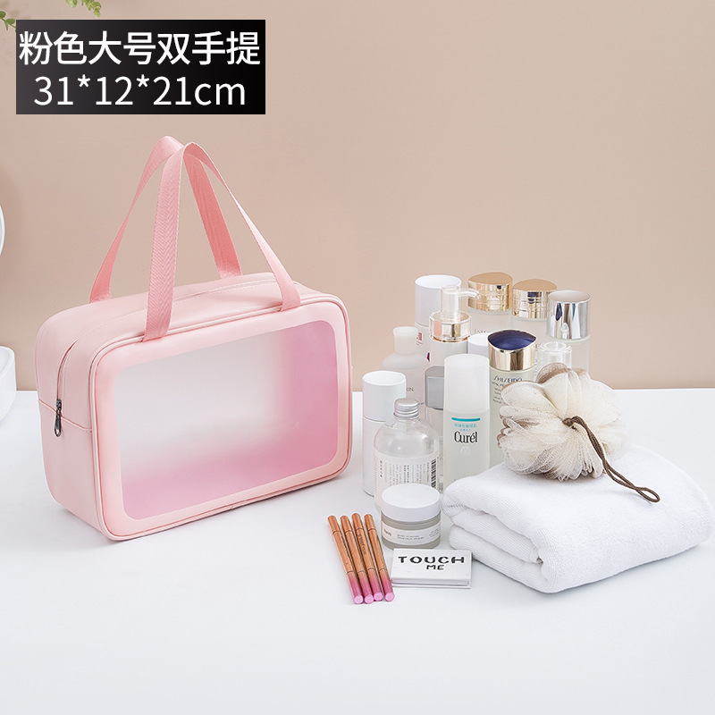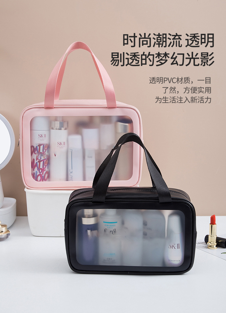 로고가 없는 PU 화장품 가방, 간단하고 휴대 가능하며 대용량 투명 세면 용품 가방, 가정용 여행 화장품 가방 보관 가방
